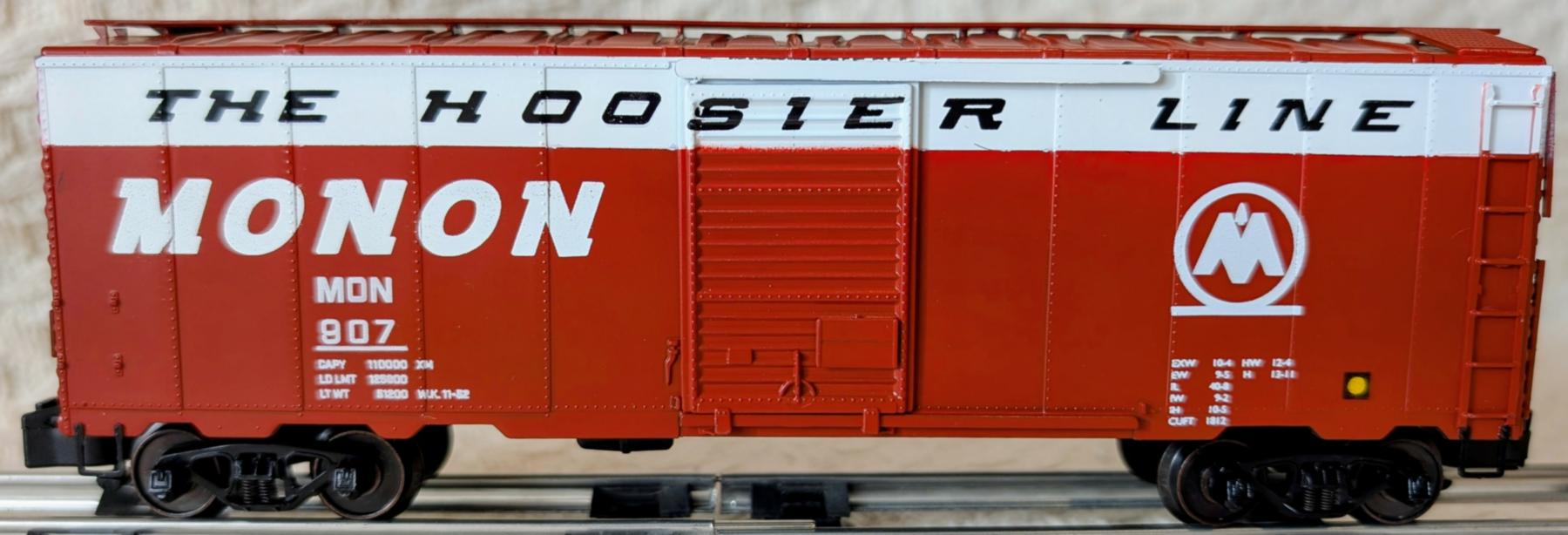 The 2025 issue of the NASG's Annual Member Car Program is the 40-foot box car lettered for the Monon Railroad (originally the "Chicago, Indianapolis, and Louisville Railway", reporting mark CIL). The Monon lasted from 1897 to 1971 when it was merged into the Louisville & Nashville Railroad. Today, the former Monon track is owned by CSX. For 2025 we feature the legendary Monon box car #1. John W. Barriger III, when he ran the Monon, remembered from his early years as a yard clerk that it was easy to write down the wrong road number for cars with 6-digit road numbers. So, when the Monon ordered 500 40-foot box cars from Pullman-Standard in 1947, he simply had them start with #1. Box car #1 was built in July of that year and used the C.I.L. reporting mark (reference). Road number 1 had 7-panel Superior doors. The second box car is road number 907, which was produced in the early 1950s and has Commonwealth doors.
