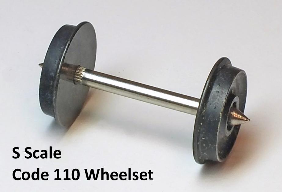 Most S scale modelers use prototypically-accurate scale wheels with profiles made to NMRA/NASG code 110 (0.110" wide) specifications. A small percentage of S modelers use P:64 wheels that are code 88.