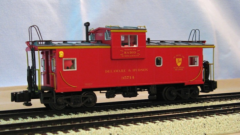 Includes full interior with a hand-painted two-man crew, "swing motion" sprung trucks, brass running boards, and opening end doors.