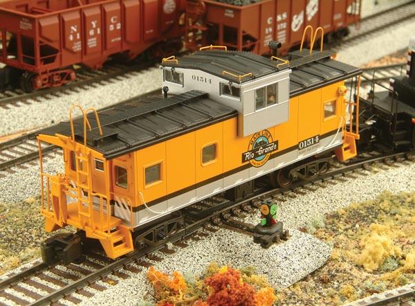 Includes full interior with a hand-painted two-man crew, "swing motion" sprung trucks, brass running boards, and opening end doors.