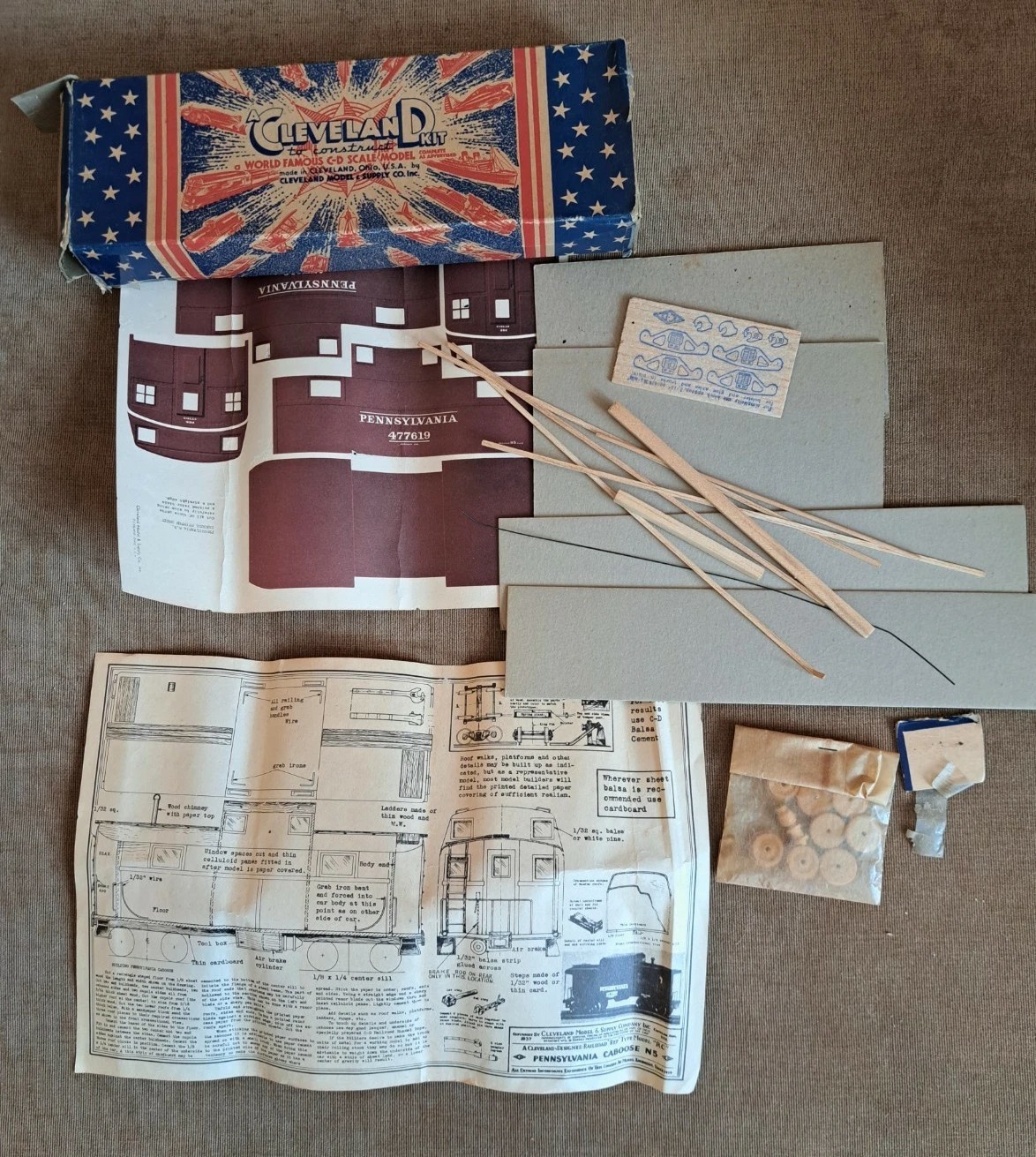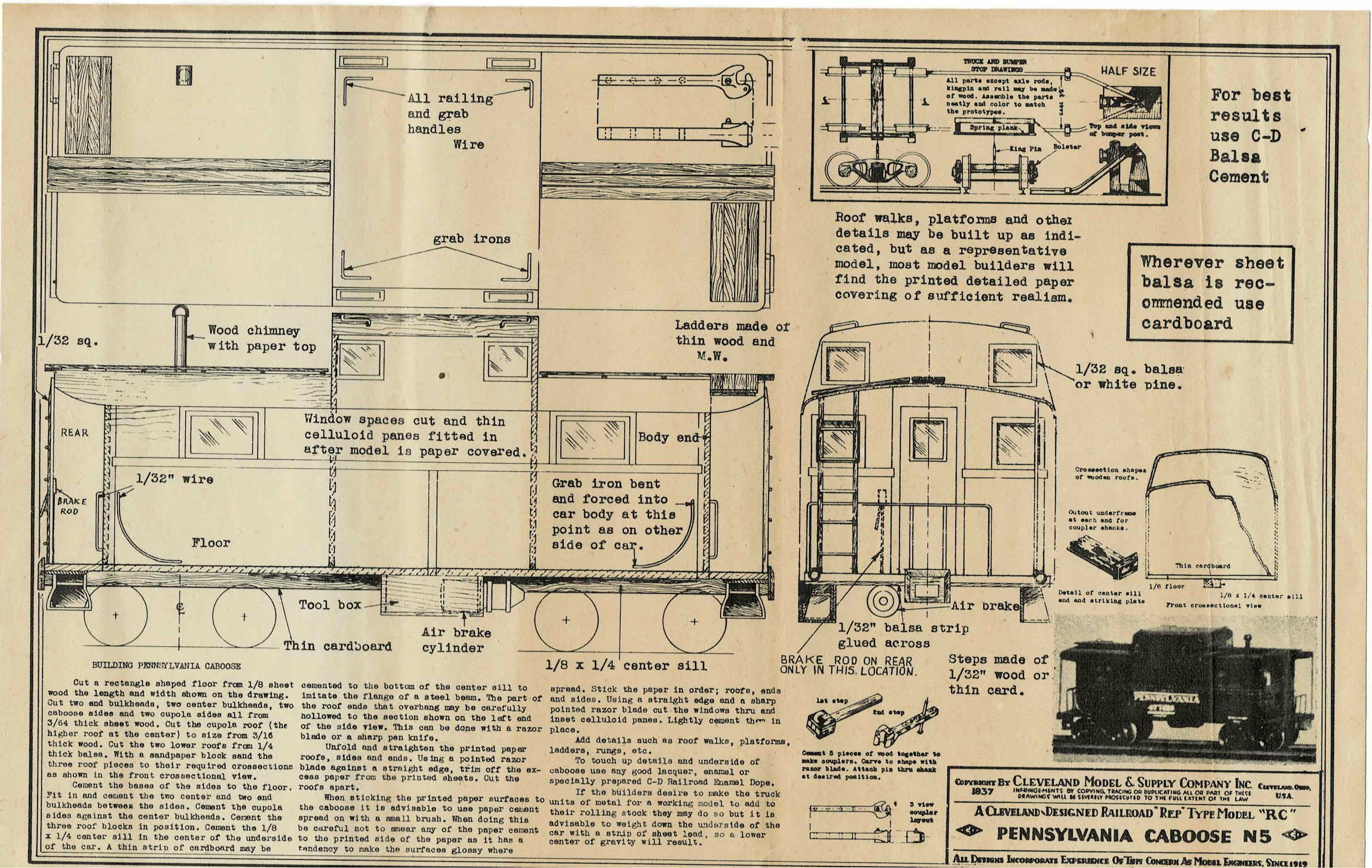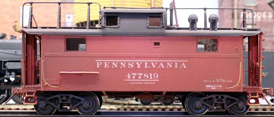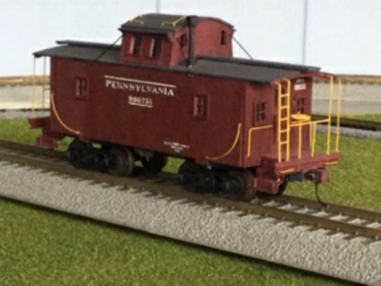 Mick describes the kit as being very similar to Quality Craft's O-scale version of this car, except for the O-scale car has four castings for the cupola, whereas the Pennsy Mainline Models' S-scale version used scribed siding which the modeler had to cut to create the window openings. Since no S-scale version of the PRR trucks exists, Mick used a pair of American Models trucks on his model.