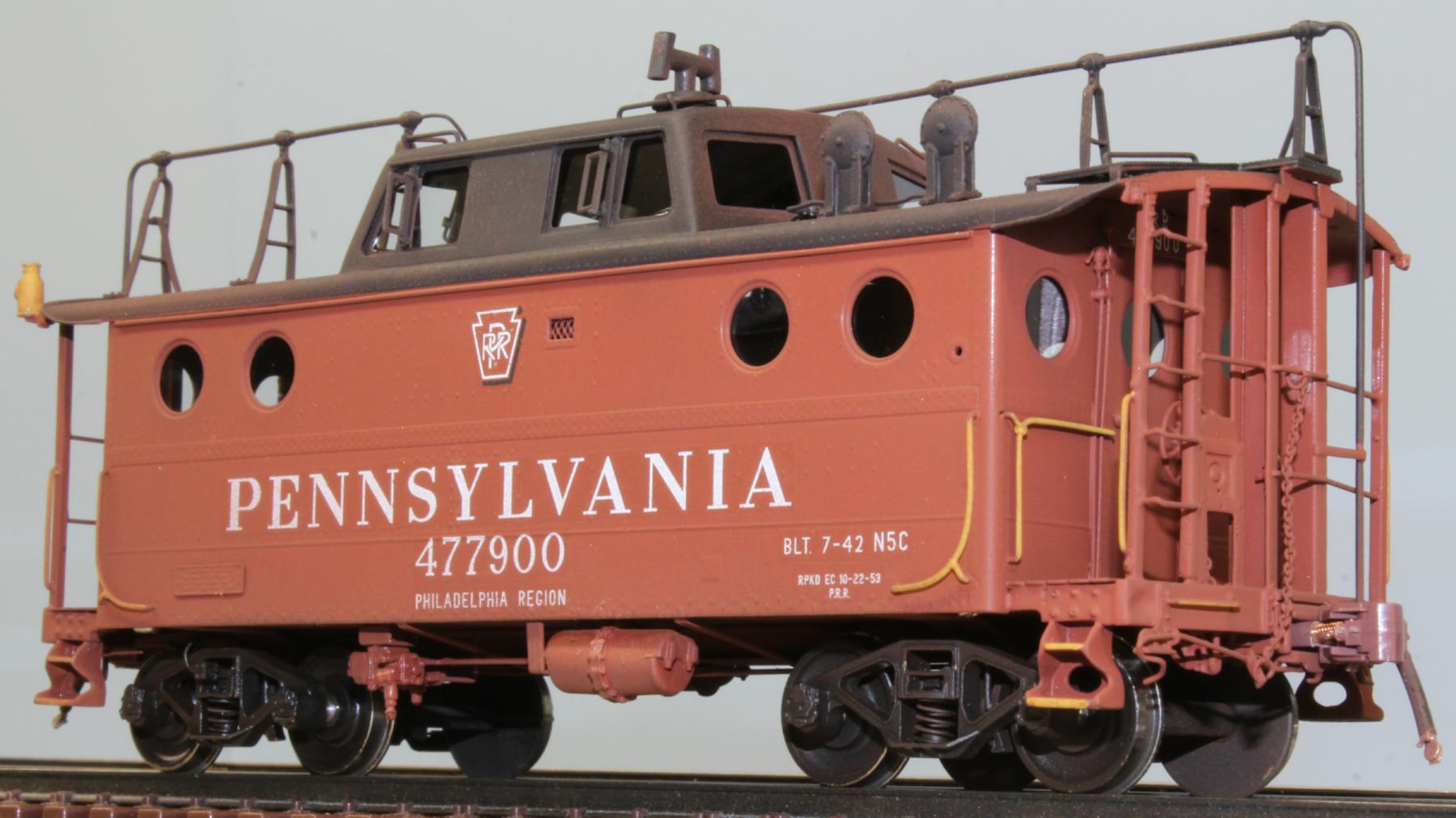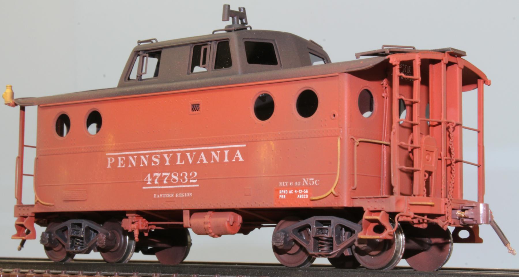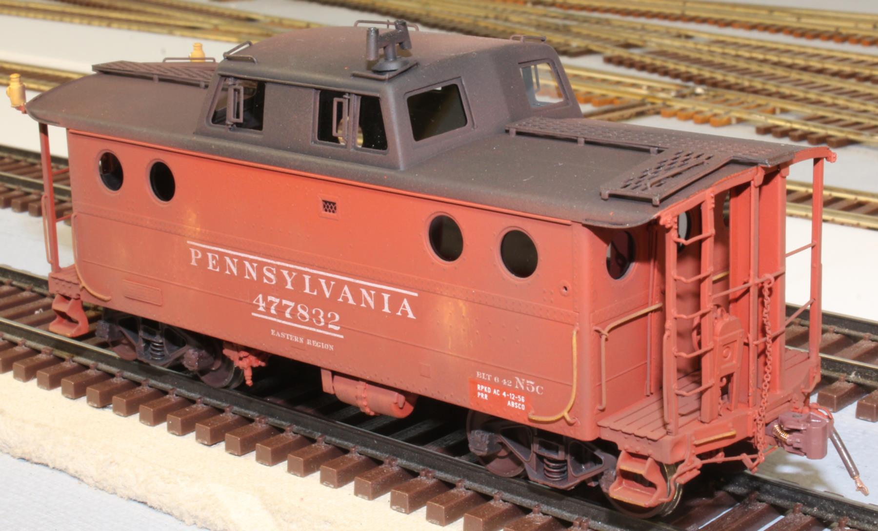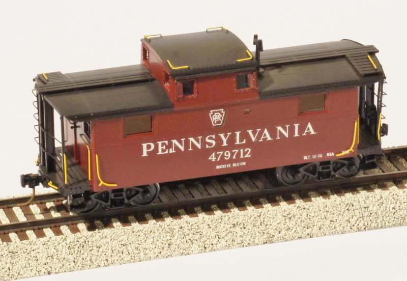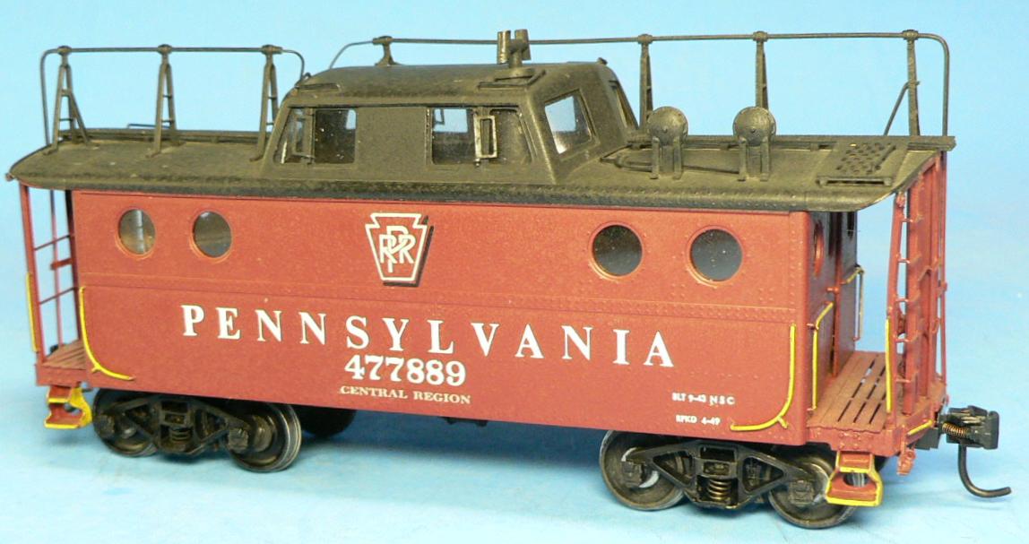 A small number of these models were available factory-painted and lettered with either freight-car brown or tuscan red. The majority were sold unpainted. As a prototype side note, the cars without the rooftwalk should have only been painted and decorated for the Penn Central or Conrail, not the PRR.