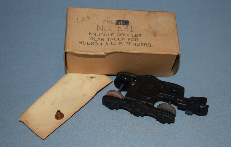 The #531 knuckle coupler rear truck, for Hudson and UP tenders, was produced from 1953 through 1956.