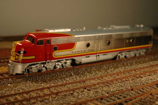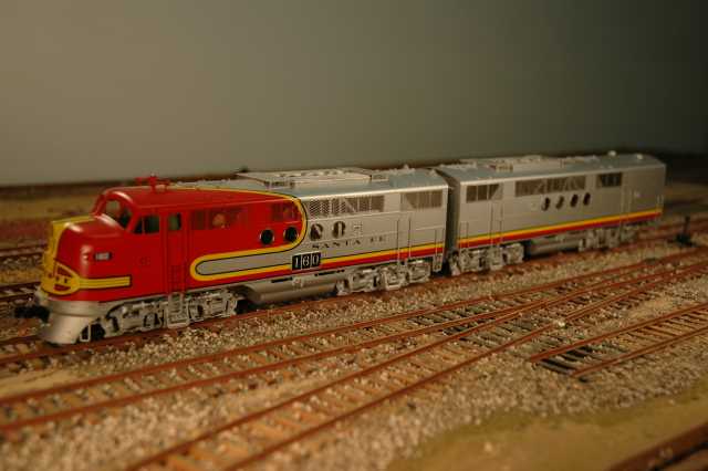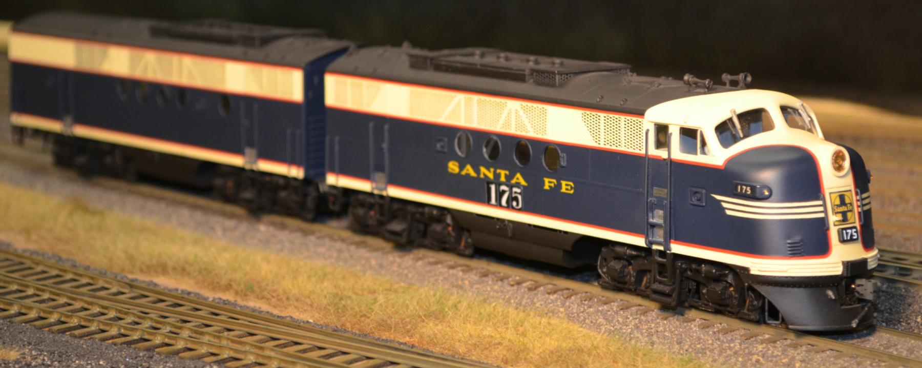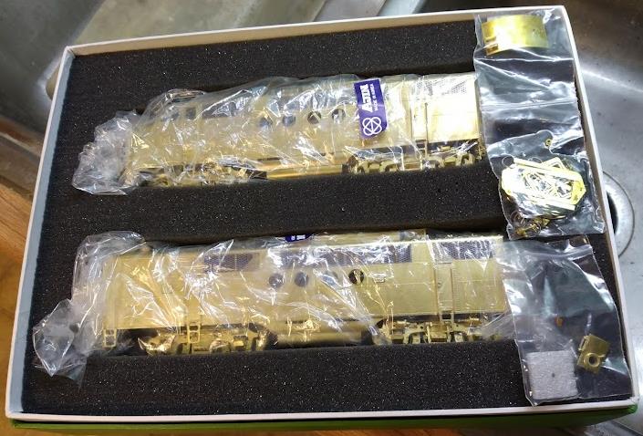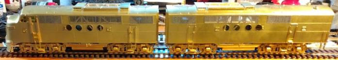 This is a matched pair of an A- and a B-unit, both powered. These are the dynamic brake versions. They are connected with a drawbar, but that can be replaced with couplers. These were specifically for the AT&SF, MP, and D&RGW versions, which had large side number boards.