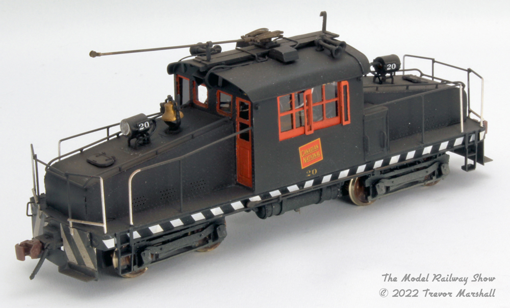 The kit comes as a set of flat photo-etched brass body components plus an assortment of brass shapes and wire, a trolley pole, and white metal traction sideframes.