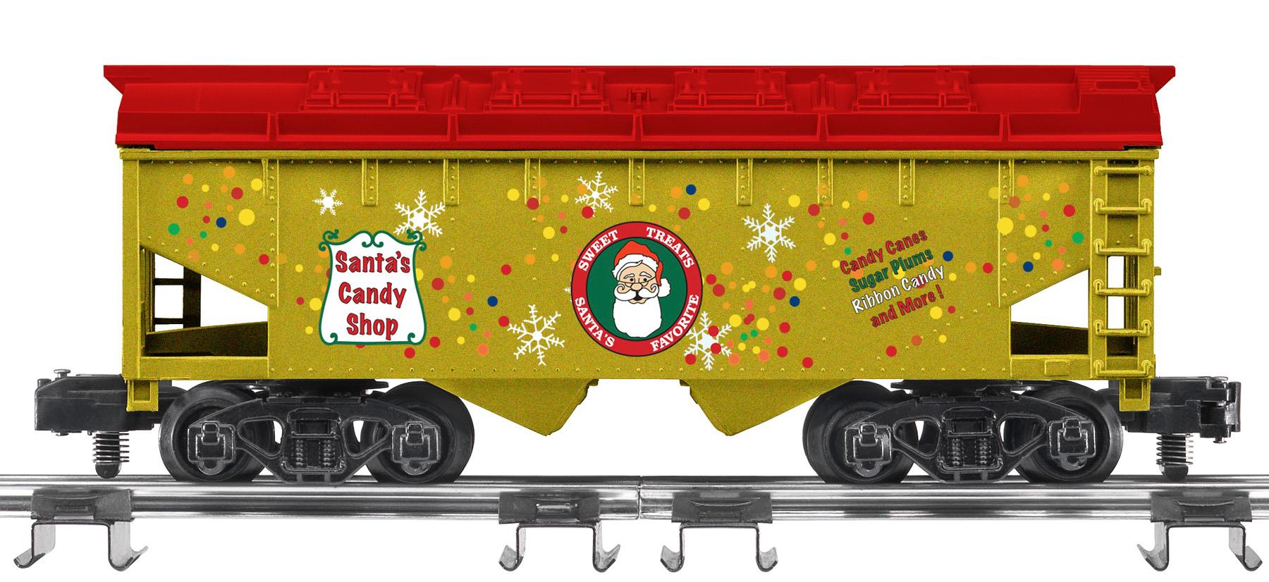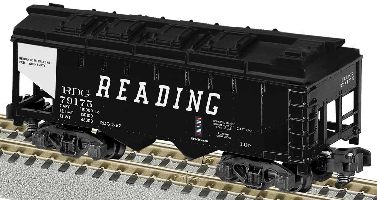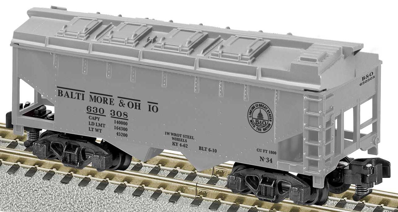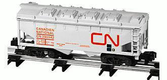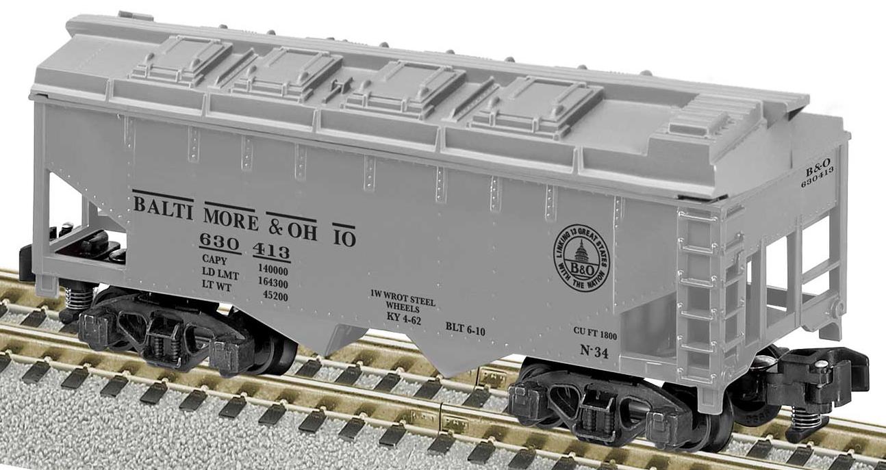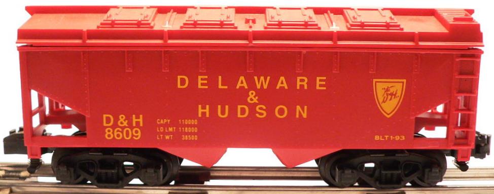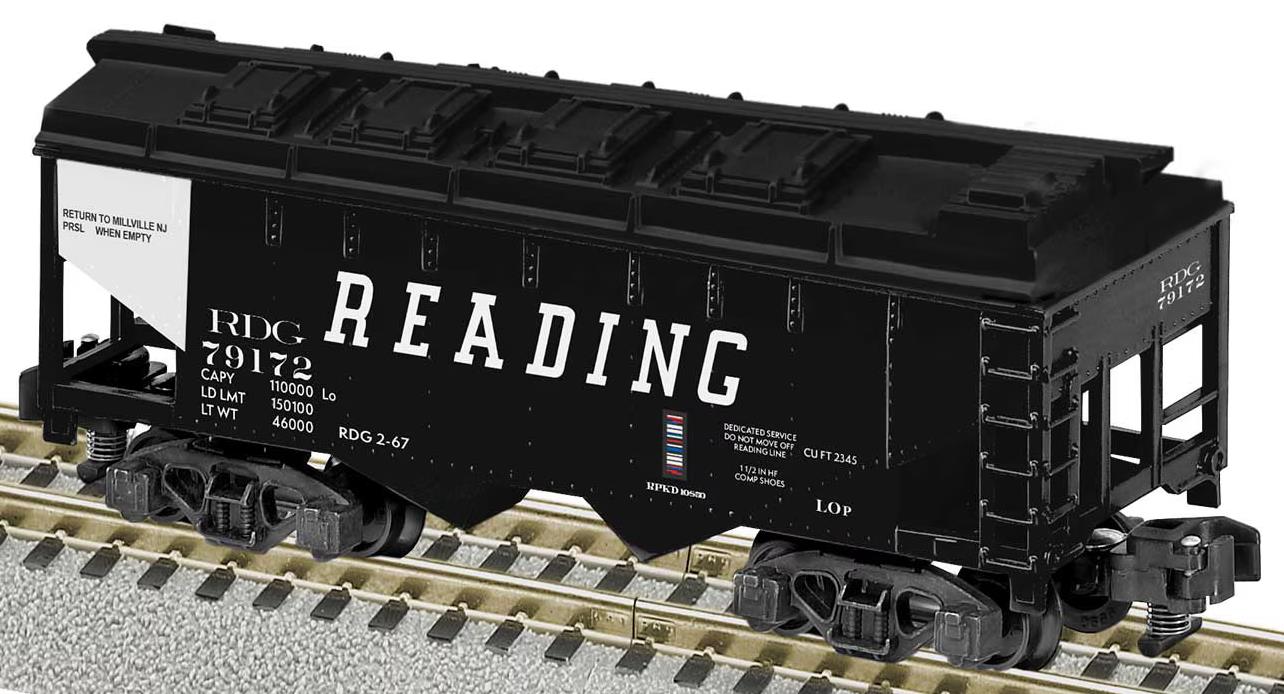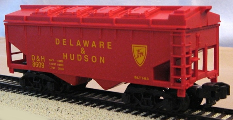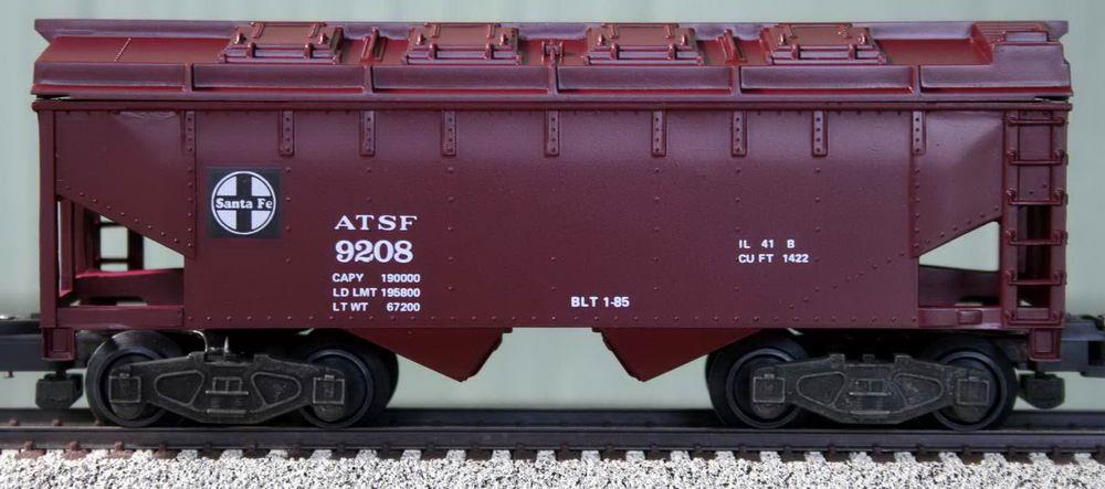 This model has a freight-car-red body color with white lettering. The cover is removable, allowing the model to be run as an open-top hopper.