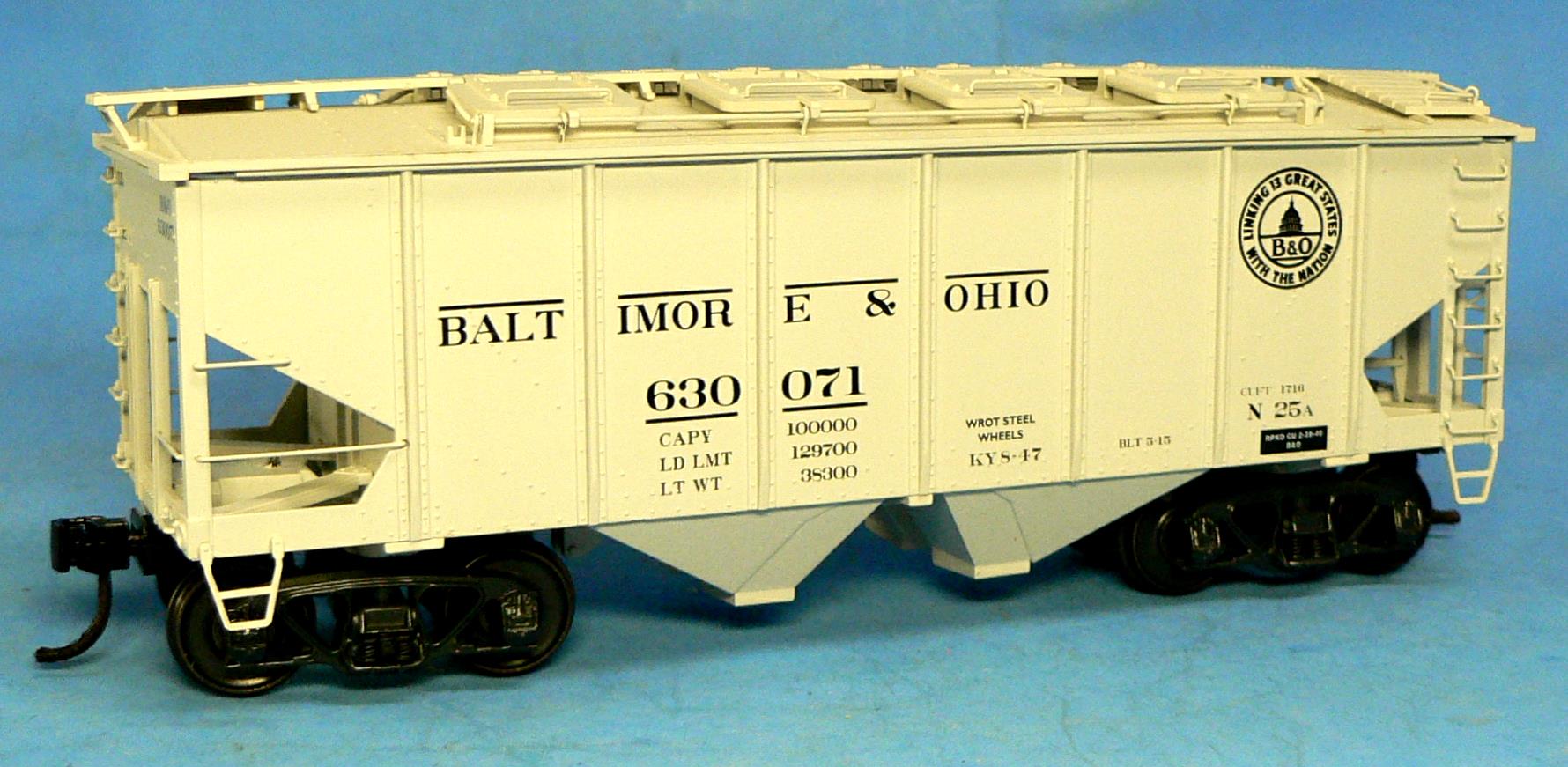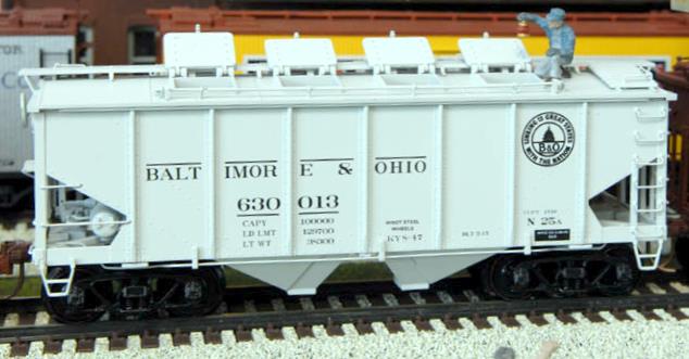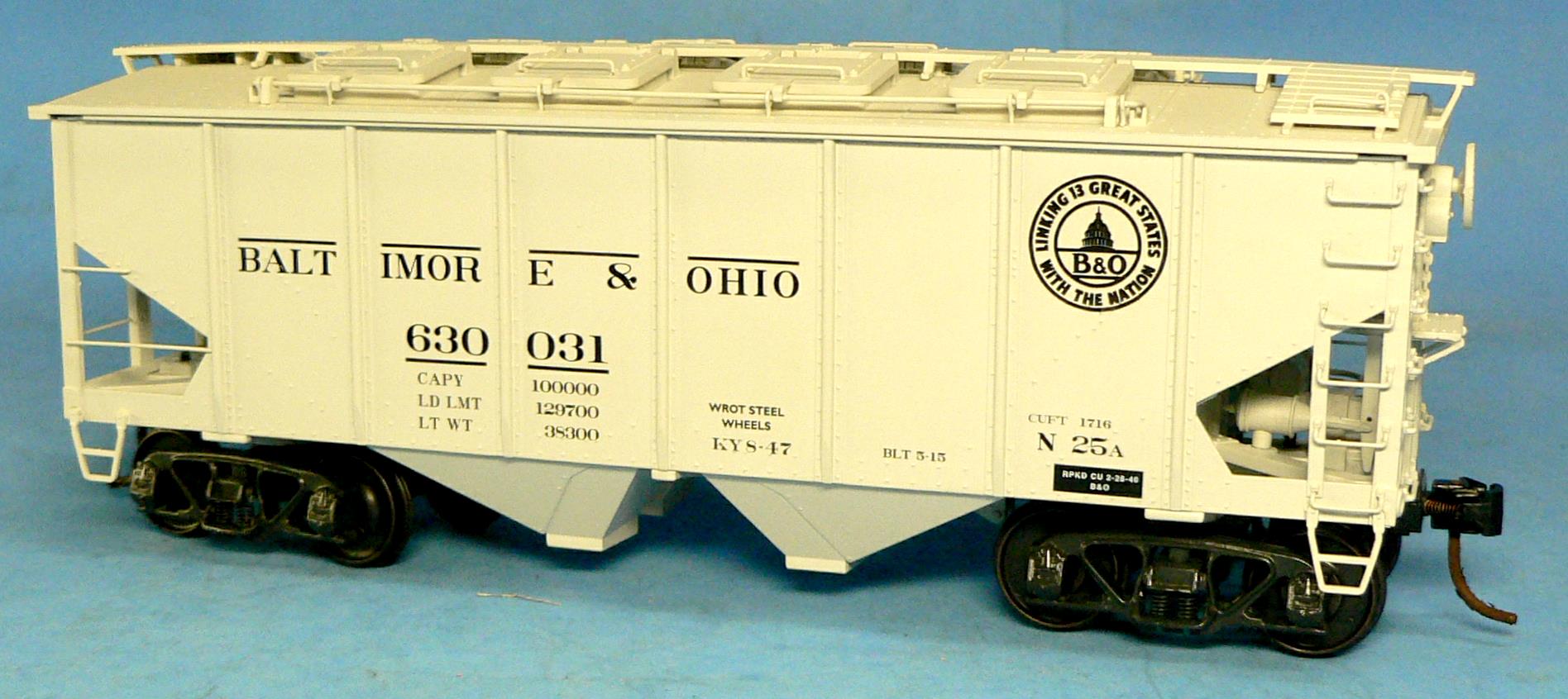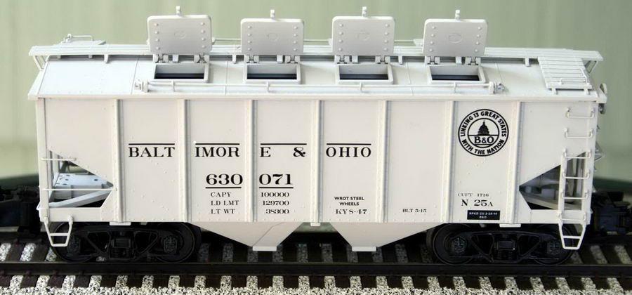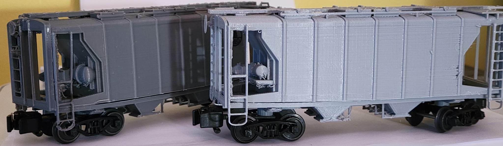 These cars were rebuilt from older two-bay open-top steel hoppers.