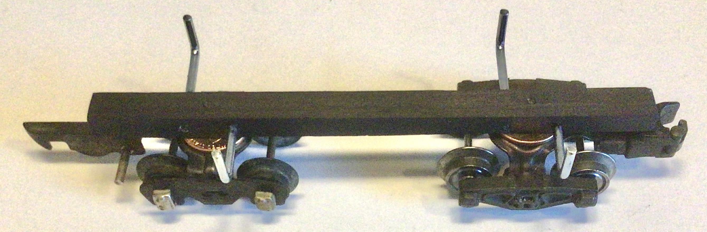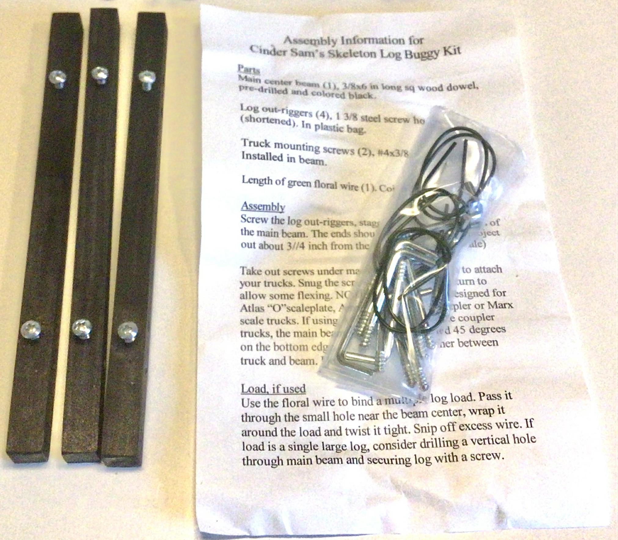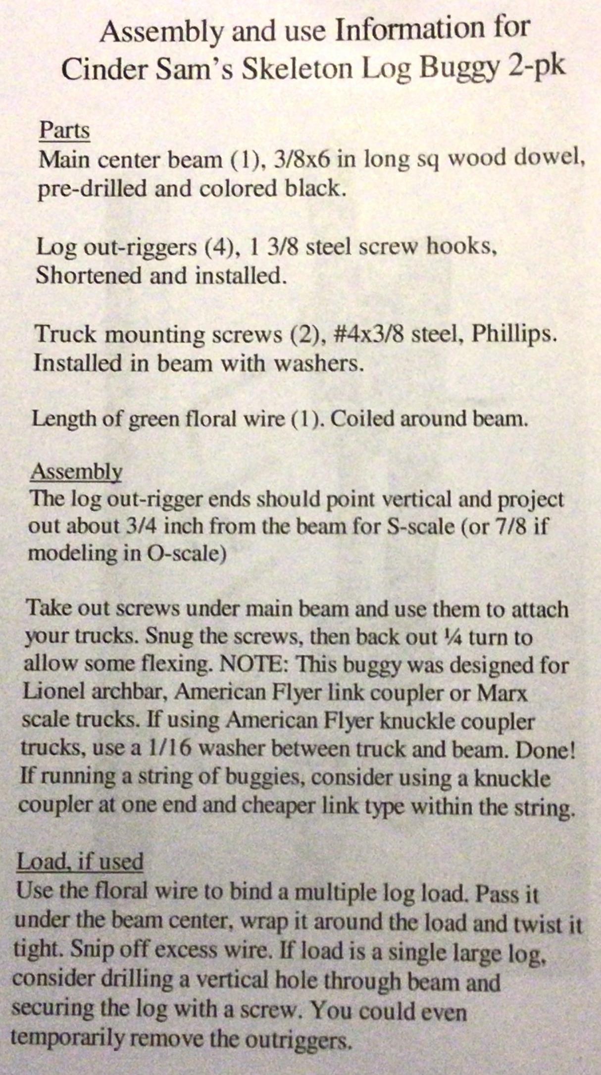 Harry Noble offers a kit consisting of parts that provide the bodies of three log-carrying cars for $14. A two-pack assembled version is also available for $10. The modeler needs to provide the trucks, with the model designed for use with A.C. Gilbert link-coupler trucks, Lionel archbar trucks, or Marx trucks. Harry is an NASG member. Contact him to order these as follows: