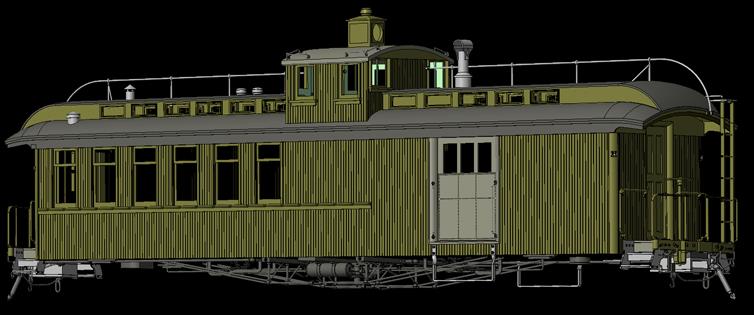 The early version was painted freight-car red with white lettering, and the later version was painted coach green with gold lettering.