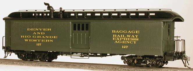 The early version was painted freight-car red with white lettering, and the later version was painted coach green with gold lettering.