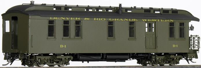 This was a business car converted to a kitchen/commissary car as rebuilt in 1917 or 1921. Since this was used by employees, this car was always placed immediately behind the locomotive, with the open vestibule toward the engine. The model has a partition, but no detailed interior. Painted green with gold lettering.