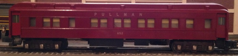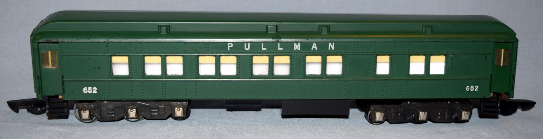1953: the wording was changed to show "Pikes Peak" above the windows and "American Flyers Lines" below the windows, and "Pullman" was moved to the end of the car; there were two tuscan variations (two different lettering styles for "Pullman") and one green one.