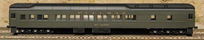 In 2004, the NASG's Special Projects committee commissioned American Models to produce this sleeper car to enhance their line-up of their heavyweight cars. There were several versions released, with this one being painted Pullman-green with a black roof which was standard for Pullman's own cars. The appropriate Pullman decals were included, should the modeler choose to apply those.