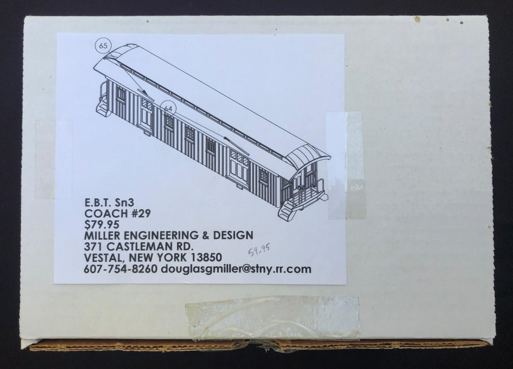 Doug Miller listed this car as a "coach", but Lee Rainey, an authority on all things EBT, stated that this was definitely a baggage car (see the prototype photo he provided).
