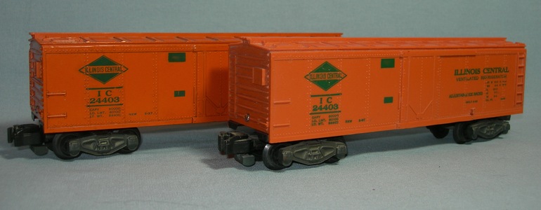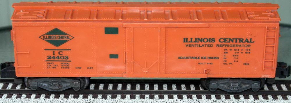 2) 1958 only, painted a slightly darker orange; it was offered as part of the uncataloged #20151 Simmons Special train set, with less than 500 produced, with each set containing two of these cars, there are less that 1,000 known to exist.