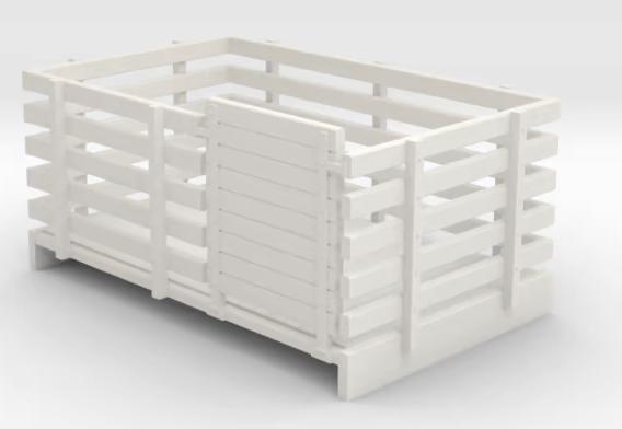 Sheep Wagon. Body only. Probably intended for two two-wheeled fixed axles. The company used to sell these on the original Shapeways web site, but since that company's demise, Tebee now sells via Cults3D, but they haven't relisted the S models.