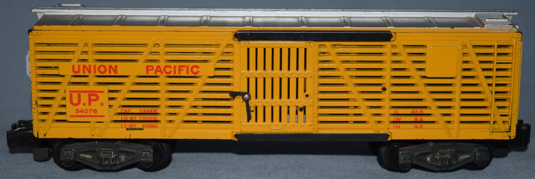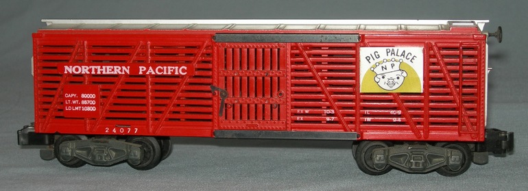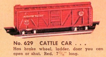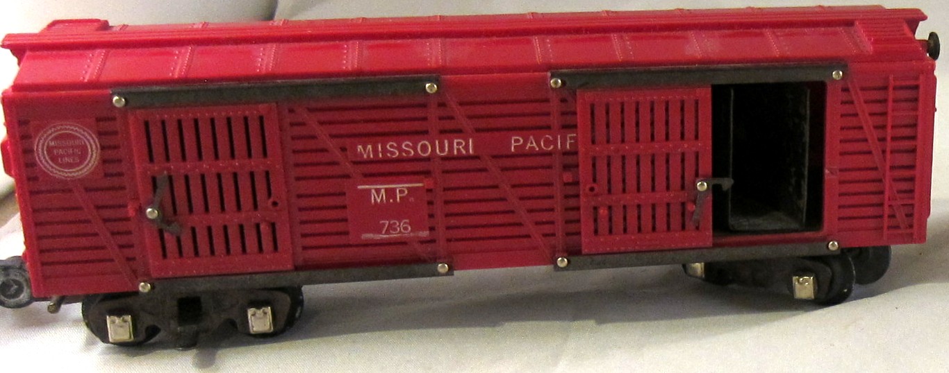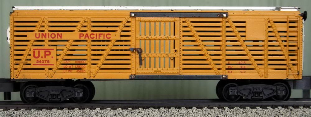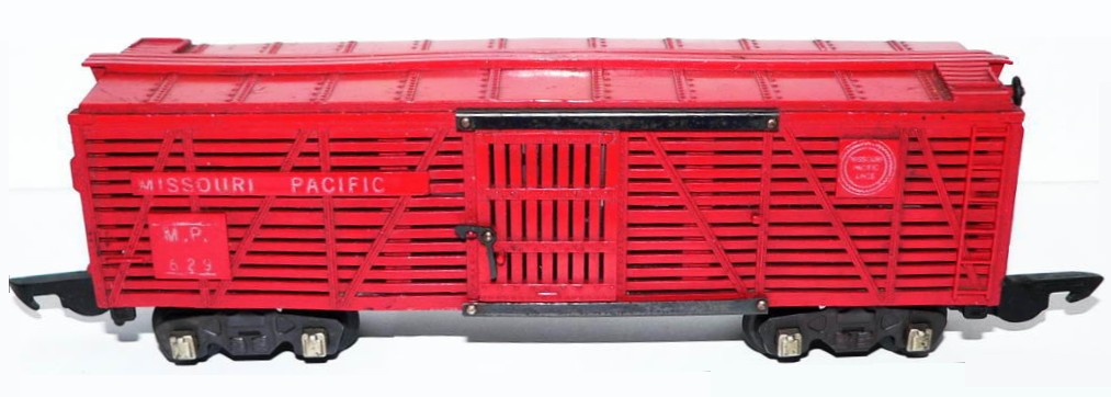 This is an operating stock car (cows enter one door and exit the other door) that came as part of the #771 Stock Yard animated accessory. It was produced through 1954.