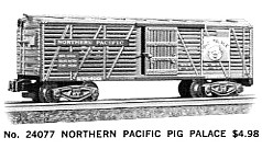 The reason for so few #24076 UP stock cars in an "All Aboard" box is that they were never produced much after 1961. Around 1965-66 Gilbert may have discovered they still had several #24076 in inventory and elected to package them in "All Aboard" packages to eliminate the inventory.
