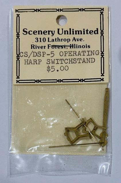 "South Park"-style harp switch stand that moves when the turnout is moved. It is a repackaged Precision Scale Co kit.