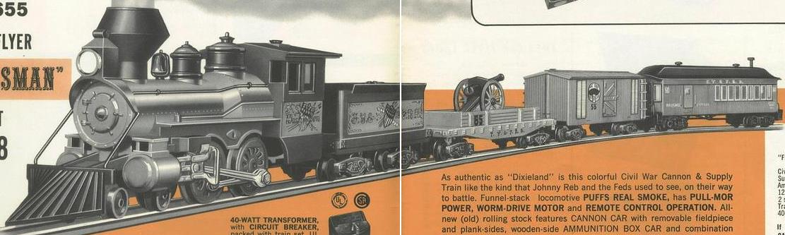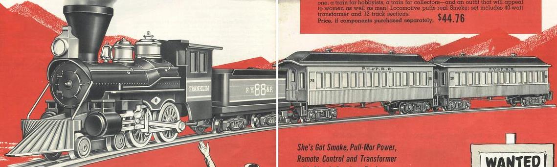 The basic "Frontiersman Set" was sold through Sears (so not part of the regular A.C. Gilbert catalog). In addition to the engine and cars, it also included track. When bought through L. B. Price Company, the set had a higher price, but it included the #26425 Trestle Set to make a figure-8.