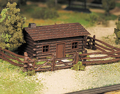 Log Cabin with Rustic Fence