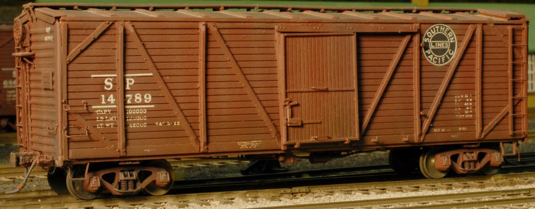 Bob Hogan kit-bashed a Kinsman Scale Models 7-panel, wood-sided box car kit into an SP-specific model.