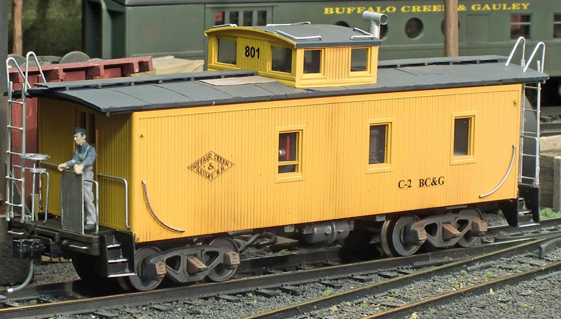 As there are no ready-to-run center-cupola, wood-sided cabooses available in S-scale, Brooks Stover built this model of an ex-Pere Marquette caboose C-2 owned by the Buffalo Creek & Gauley, by modifying an American Models offset-cupola wood-sided caboose. The build included carefully sectioning the roof to relocate the cupola, building new, more detailed, corner steps from styrene, and adding details to the end rails to match the prototype. The roof was re-painted but the body of the car retained its original yellow paint with local touch-ups as required. A detailed interior was also added to the model. An article detailing the build appeared in the September 2016 issue of Railroad Model Craftsman.