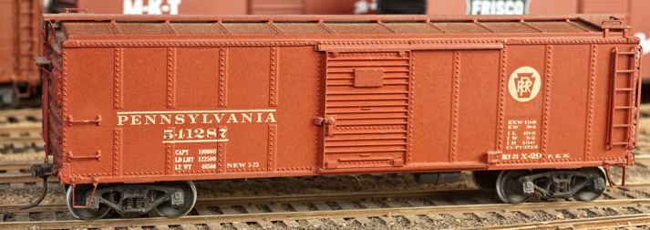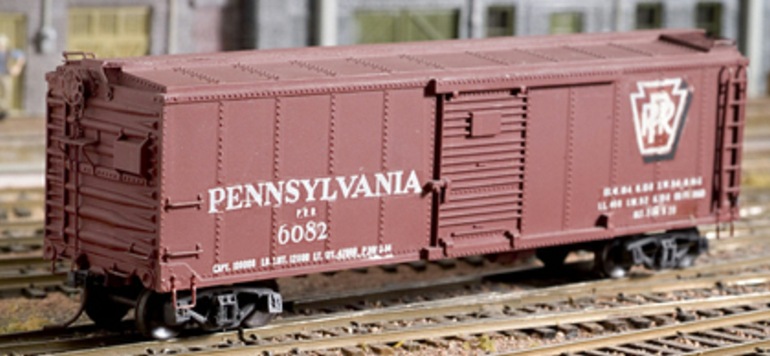 Both Jack Troxell and Bob Werre kitbashed A.C. Gilbert steel-sheathed box cars into PRR models. Jack's model represents an X29 car. Jack added the door tracks, underbody, ladders, roof enhancements, running boards, and end details. Bob converted his model to scale using an ACE floor, Liberty roofwalk, Liberty brakes, Perma-Bilt ladders, and Pacific Rail Shops trucks.
