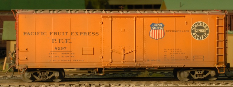 Bob Hogan kitbashed an American Models reefer, originally factory-painted and decorated for the Morrell company for the 2019 S Fest West, by adding ladders, grab irons, and brake components, and then re-painted and lettered the model for the PFE.
