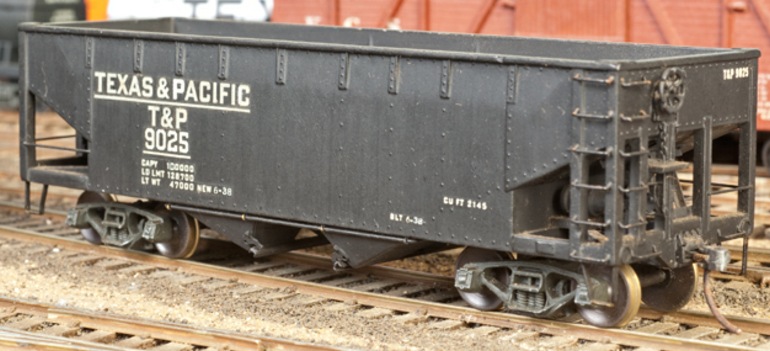 Jack Troxell converted an A.C. Gilbert #801 hopper to scale, repainted it, and lettered it for the T&P.