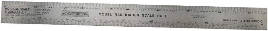 The metal ruler, part #1251, that shows many different scales, including S, is a favorite of many. However, it appears that General no longer makes this model. Their web site doesn't list it, and Walthers' web site shows it as out-of-stock.