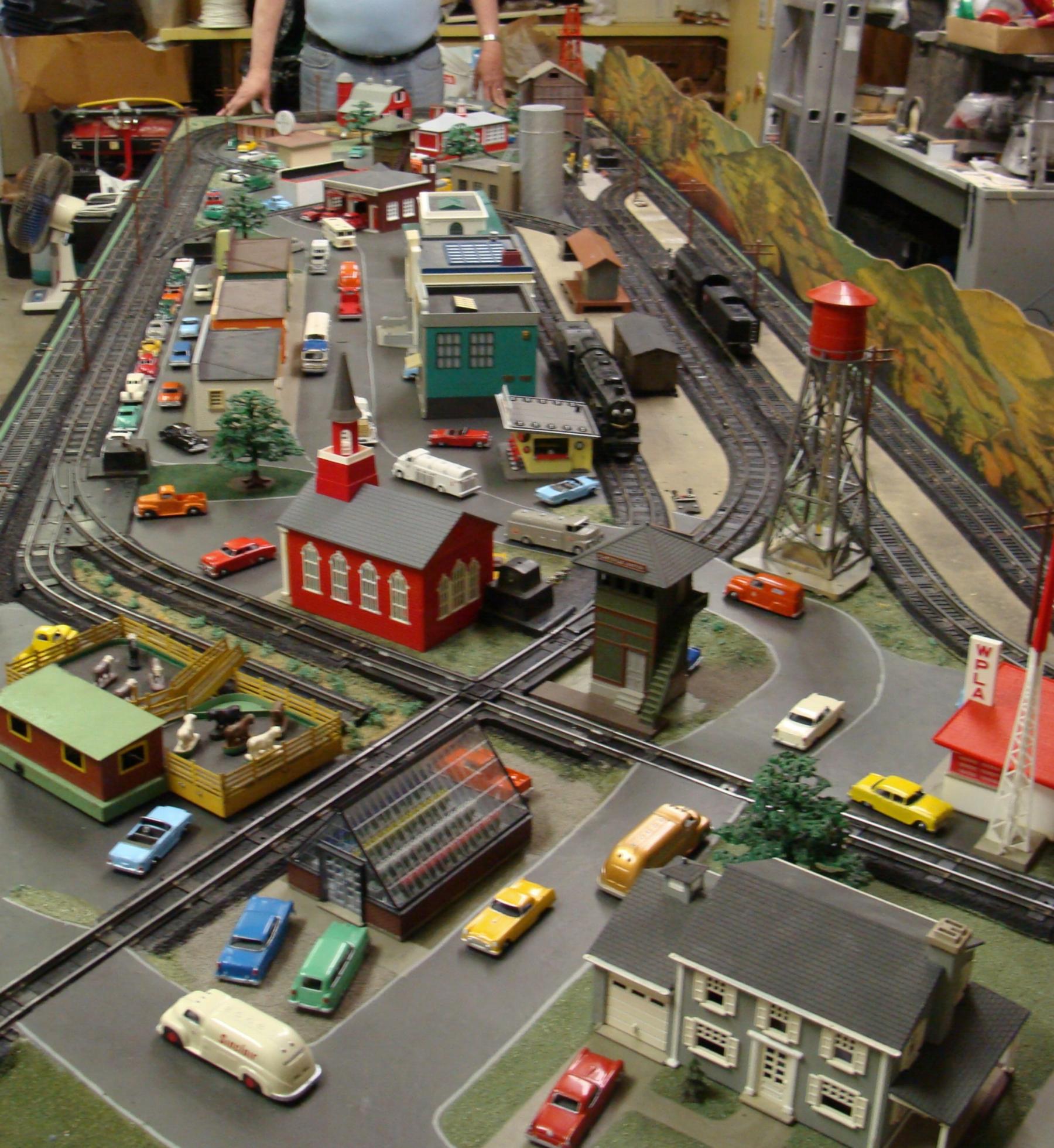 Bob built a current layout, but with only items that were available in 1960. His wife has a permanent 6' x 11' Christmas village layout which runs the Williams' "Girl Train" on it.