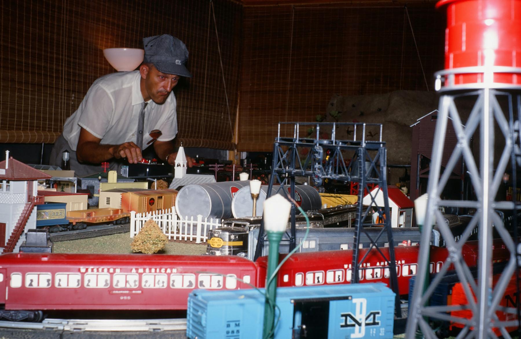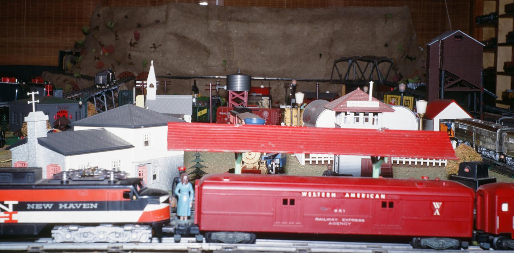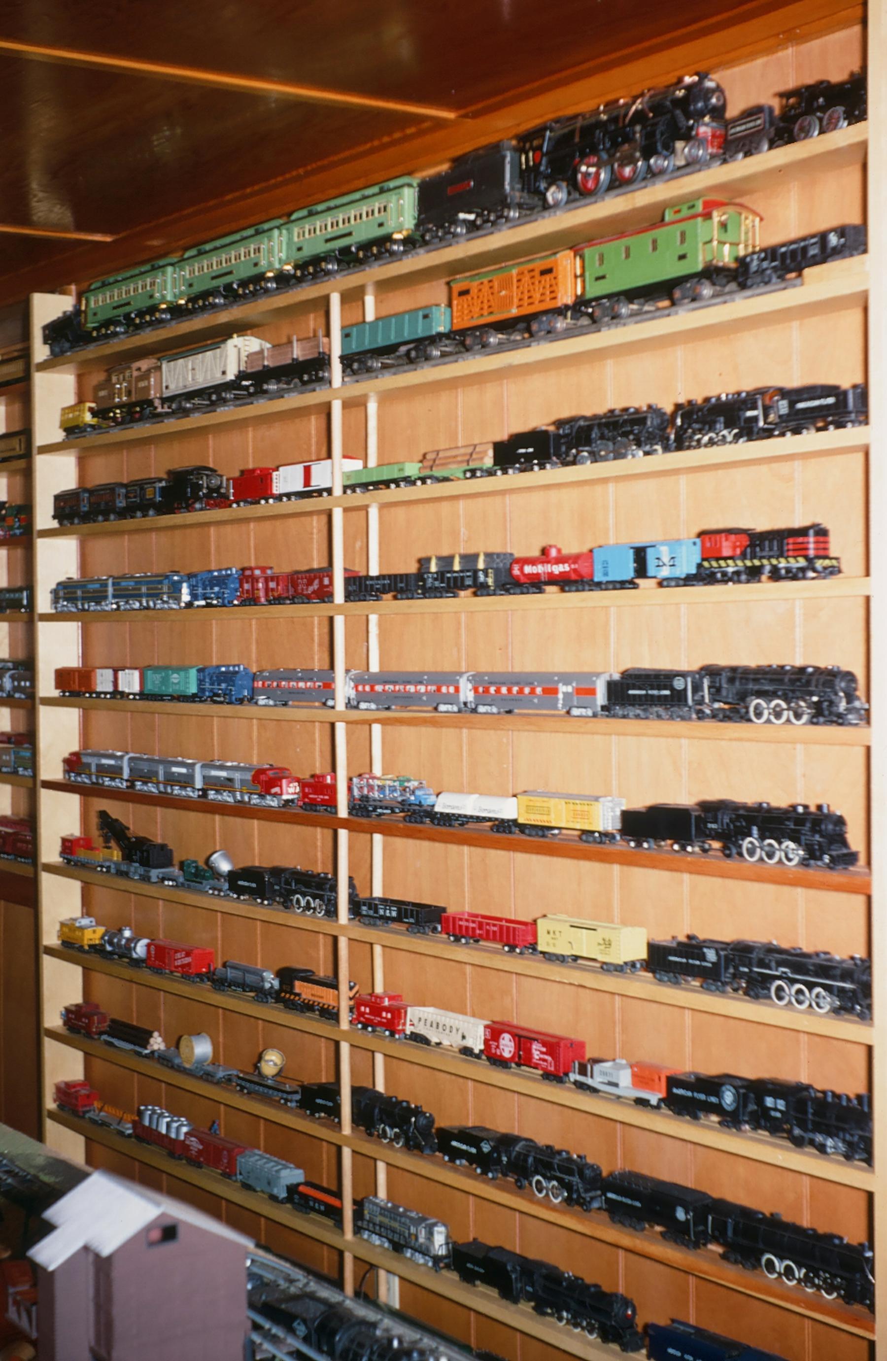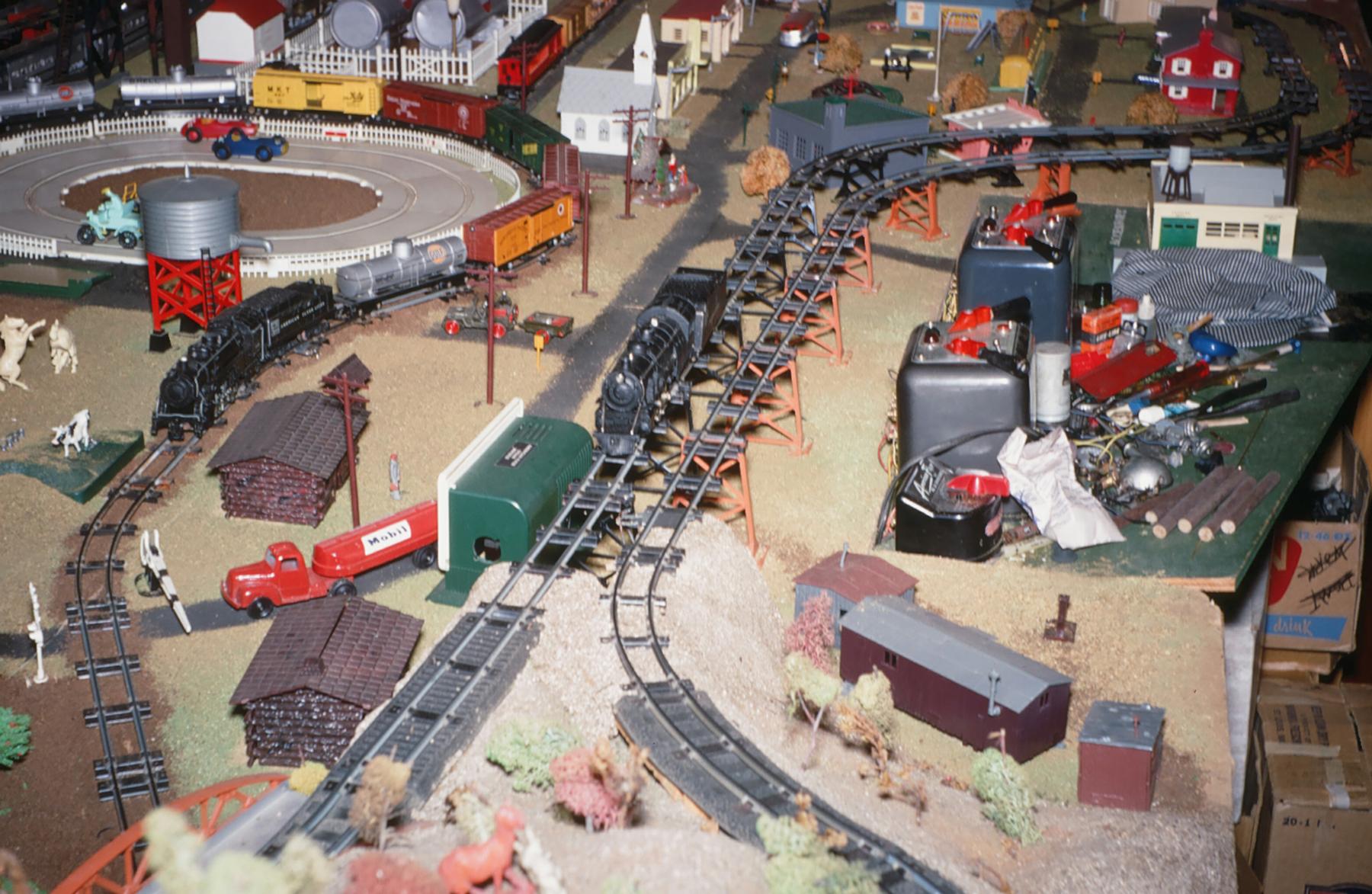 George Parthemore was an active member of the Central Pennsylvania S Gaugers. He was listed as giving the "Invocation" at the 1970 10th annual Convention of the NESGA (precursor to the NASG Conventions) in Hershey, PA. In addition to his layout, George had an extensive collection of American Flyer trains, including many rare pieces. He sold all of his trains when he moved out of state. The photos shown here were taken in the late 1960s and early 1970s. The layout included an A.C. Gilbert Horse Racing set in the middle.