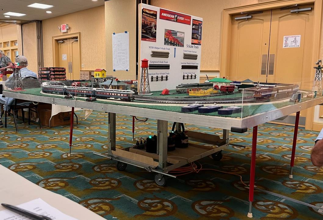 These photos were taken at the 2025 NASG Convention where Robbie had his layout on display. You can see the cart system below the layout, where the control system resides as well.