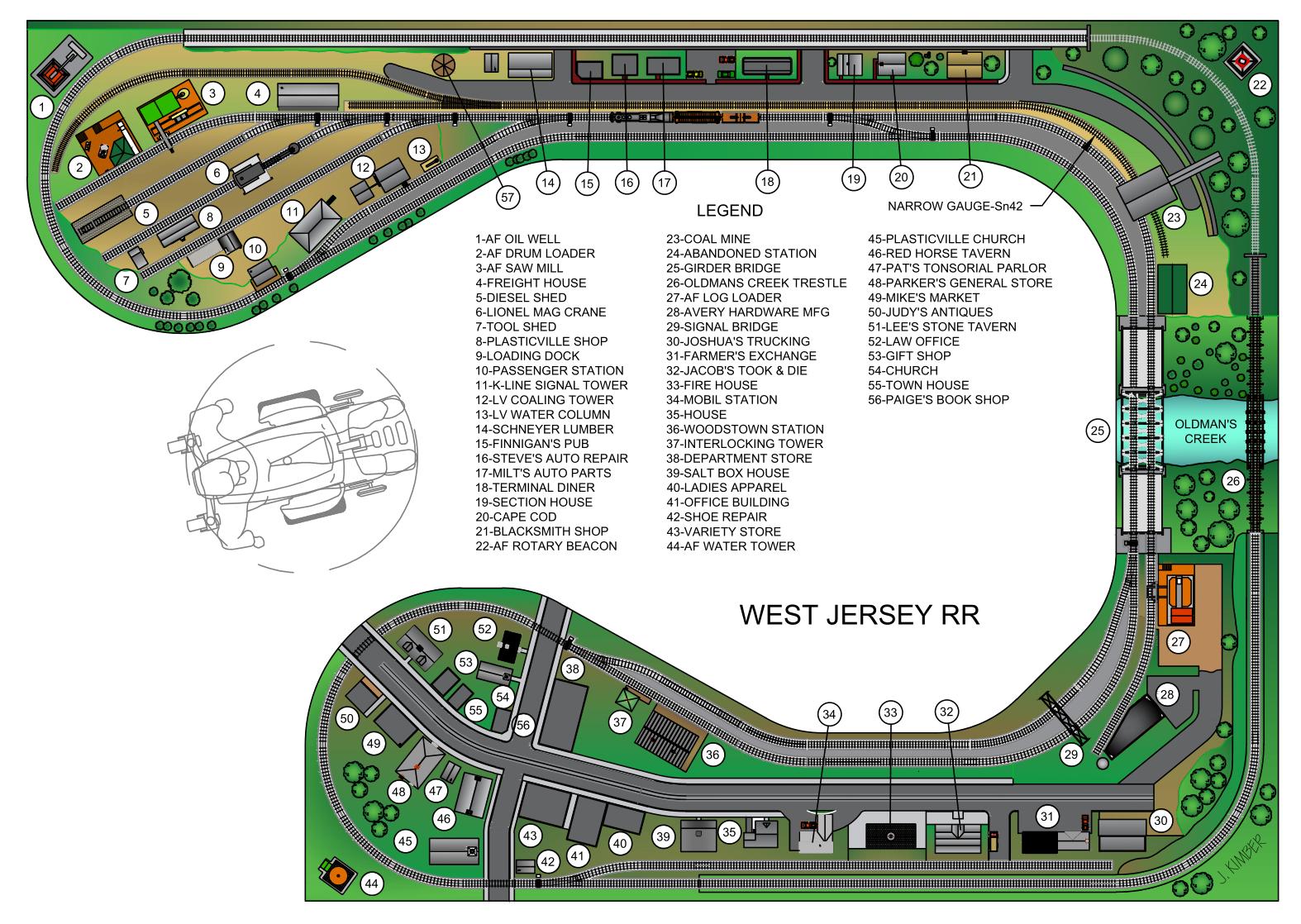 The layout is constructed in a stand-alone barn, after having been moved from the house's attic. This is Joe's third layout. The layout and its space are designed for wheel-chair access. Joe passed away in November 2023. Despite Joe's passing, members of the South Jersey S