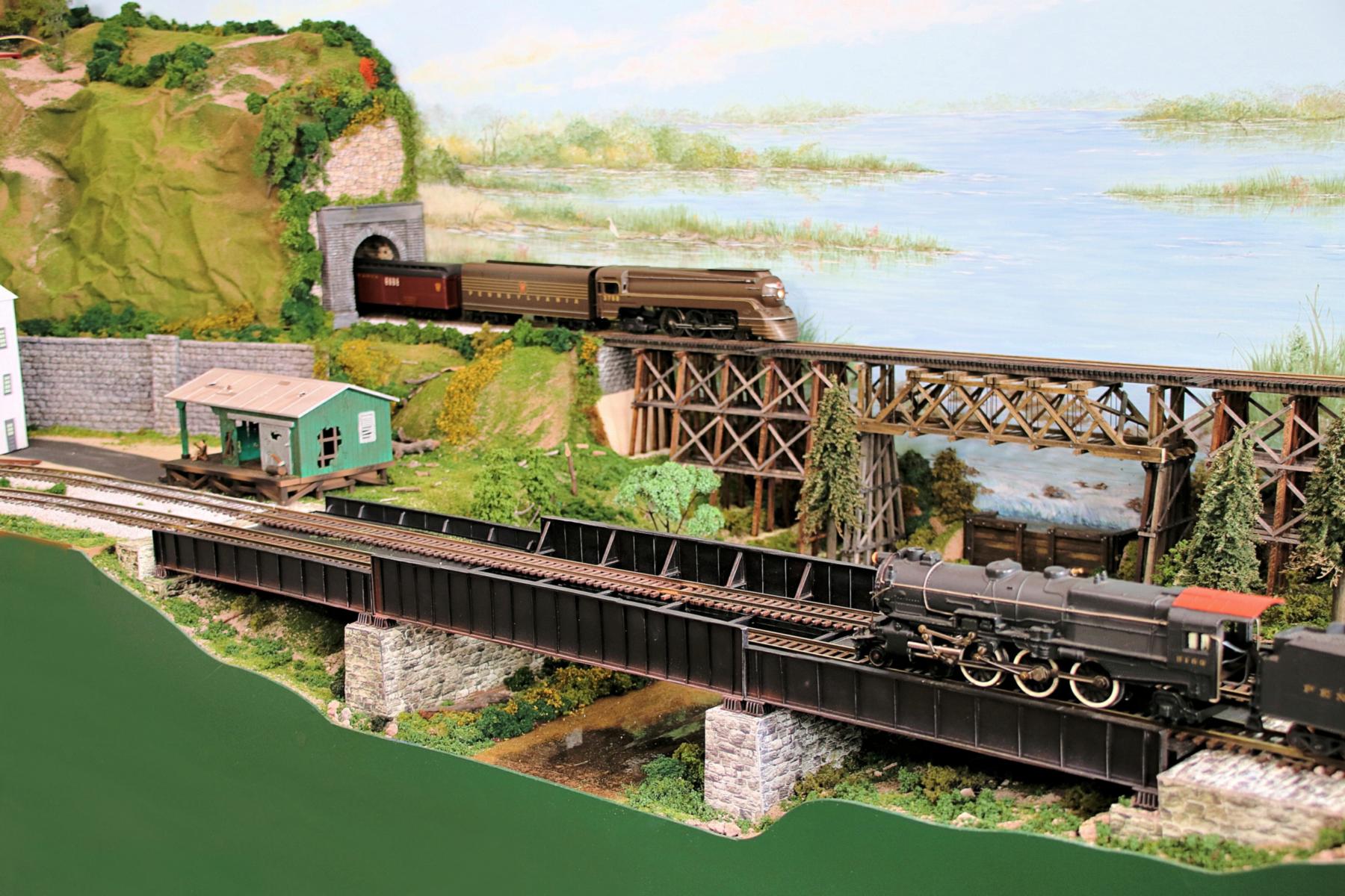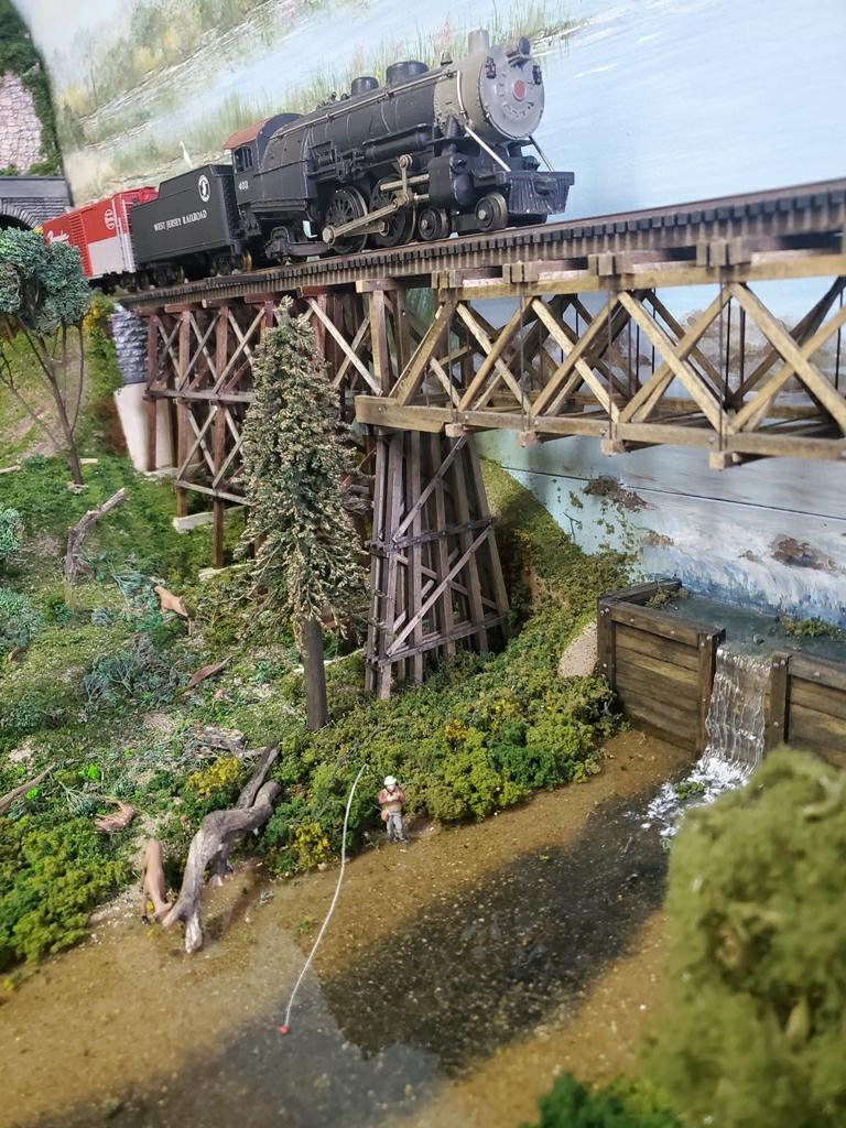 A close-up photo of the trestle bridge over Oldman's Creek (near #26 on the track plan).