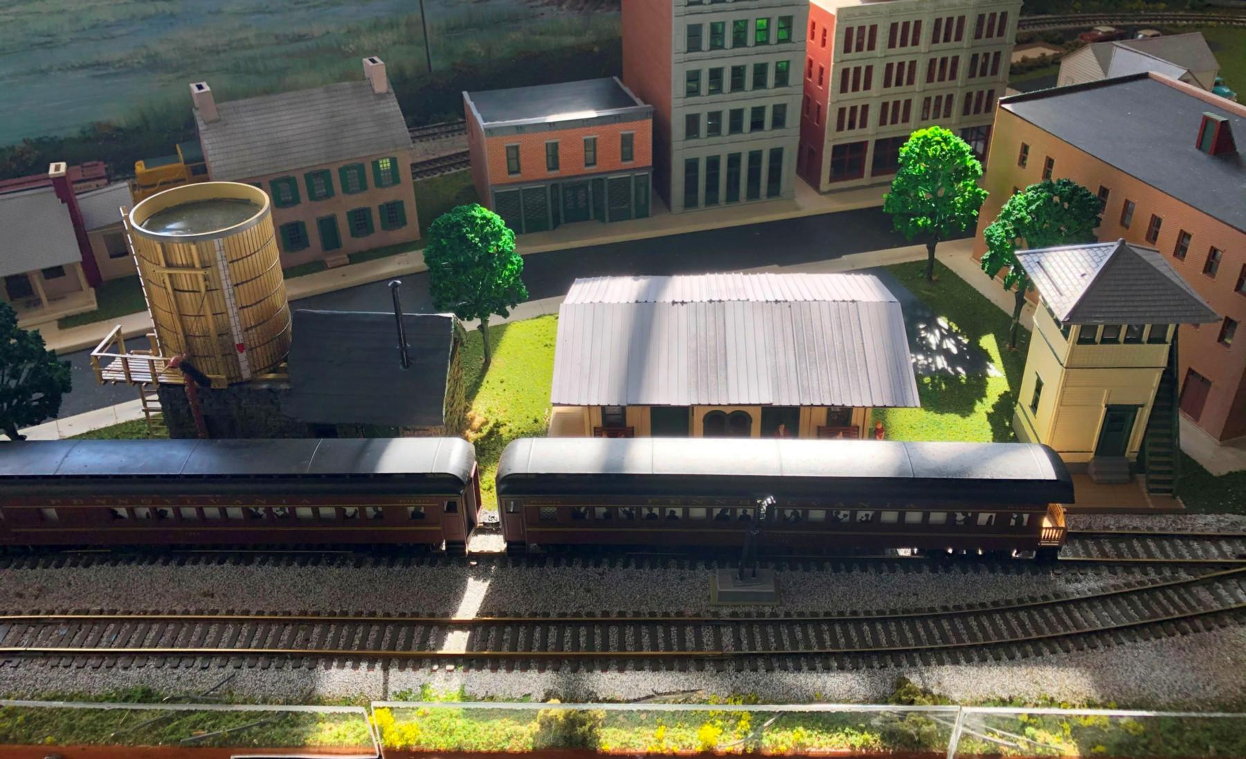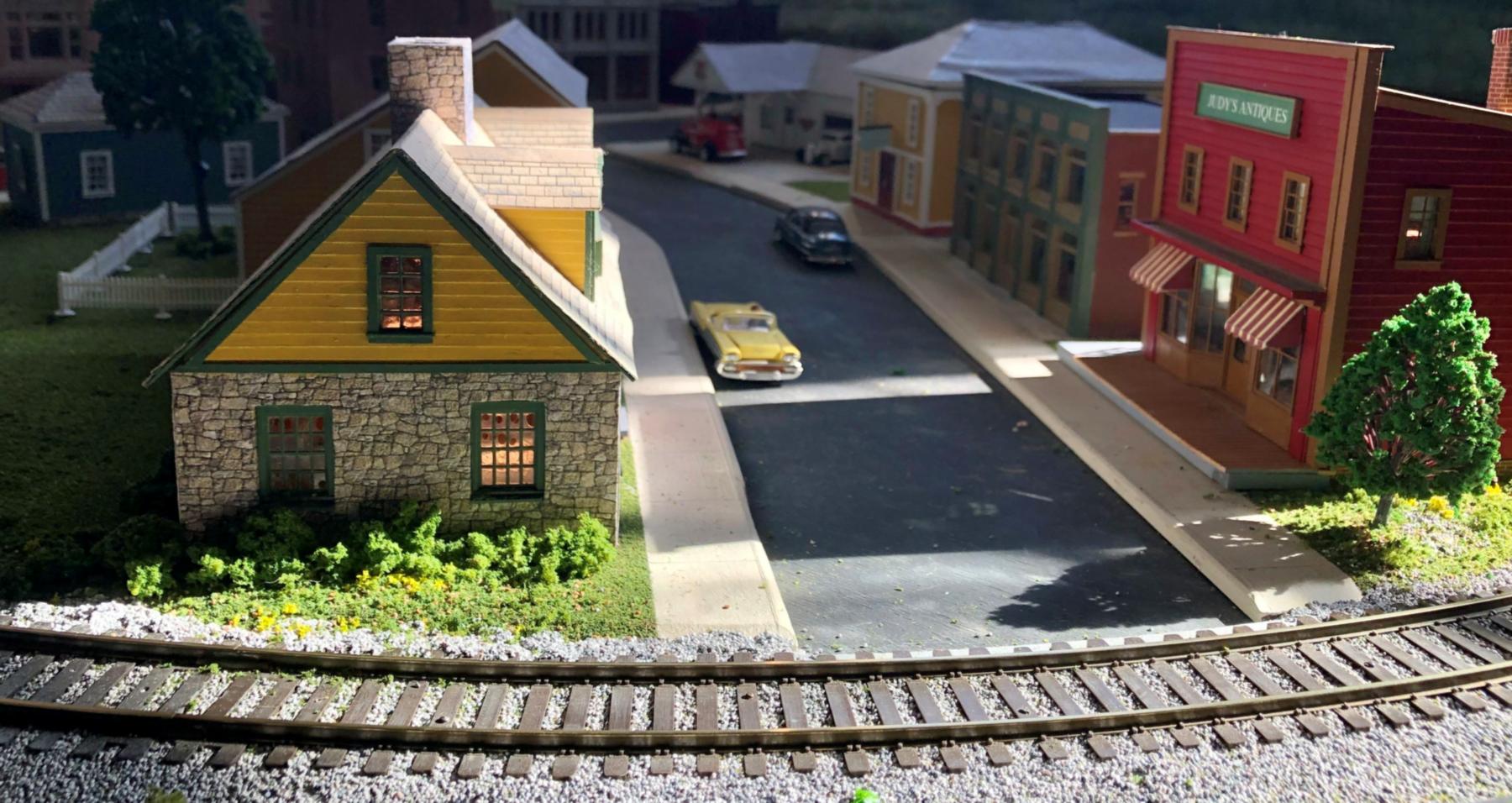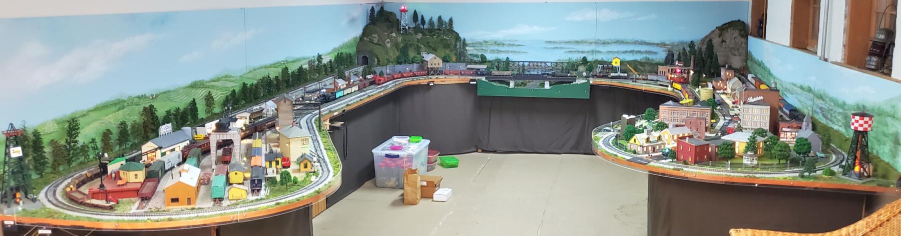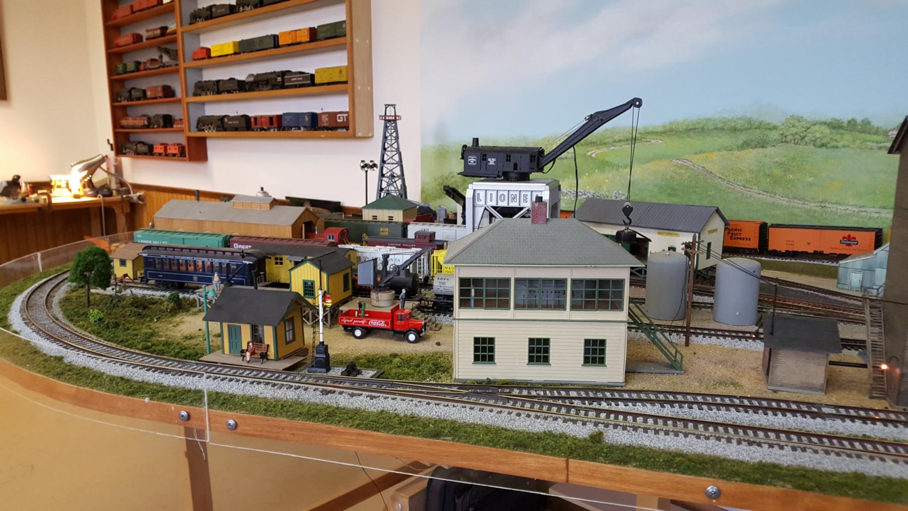 This photo shows the yard scene in the upper-left corner of the track plan.