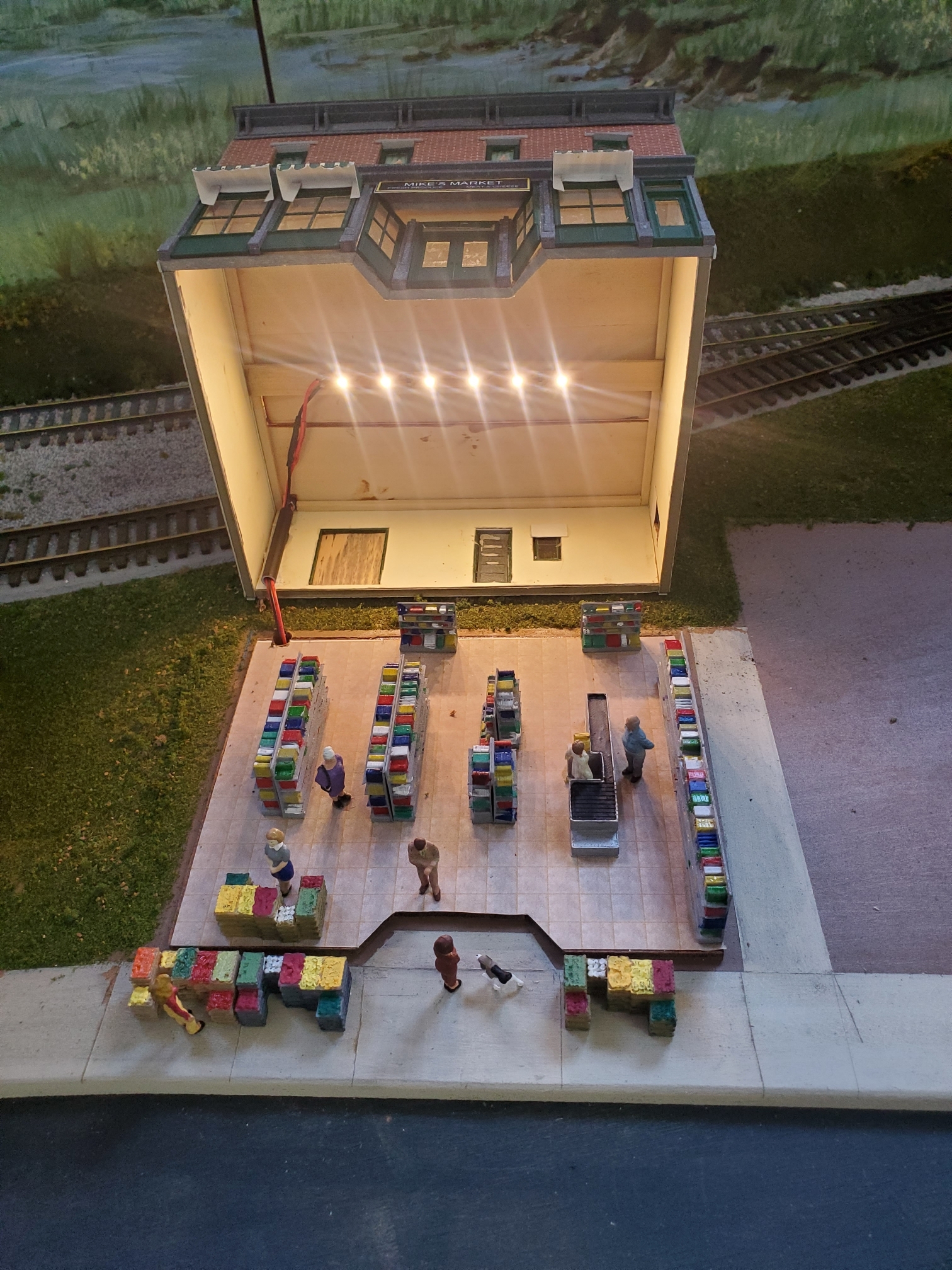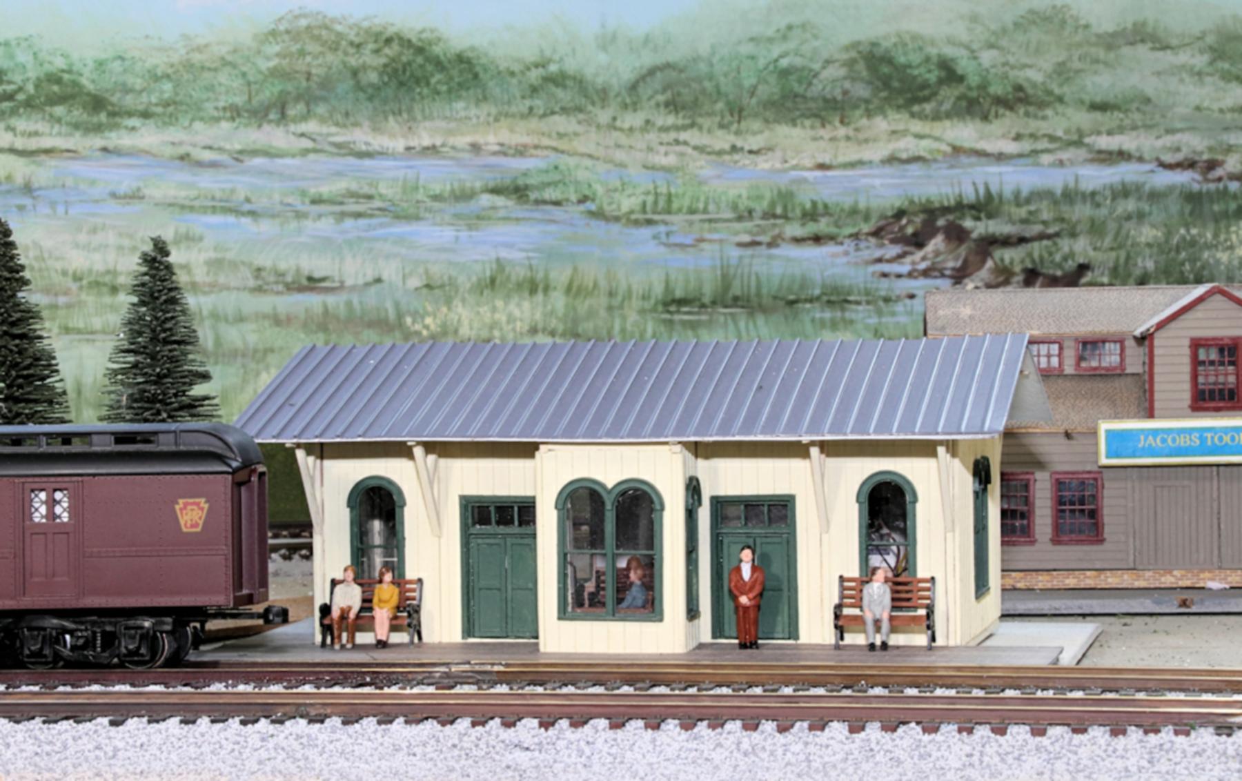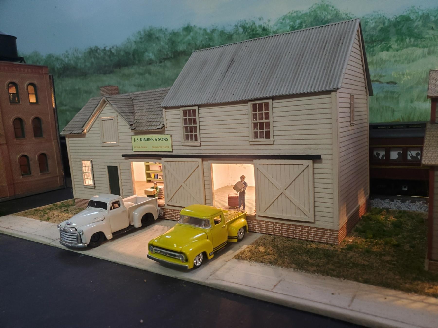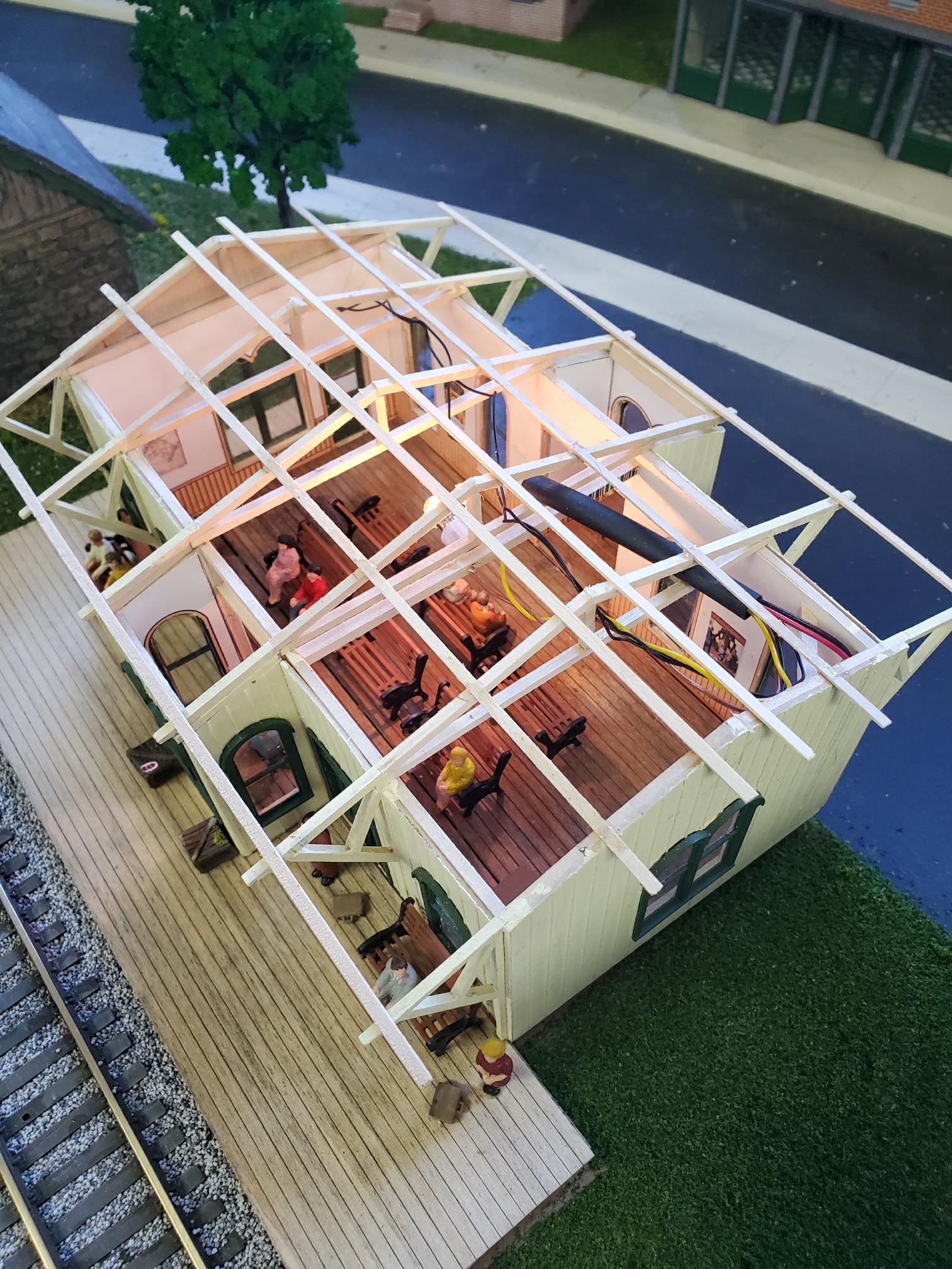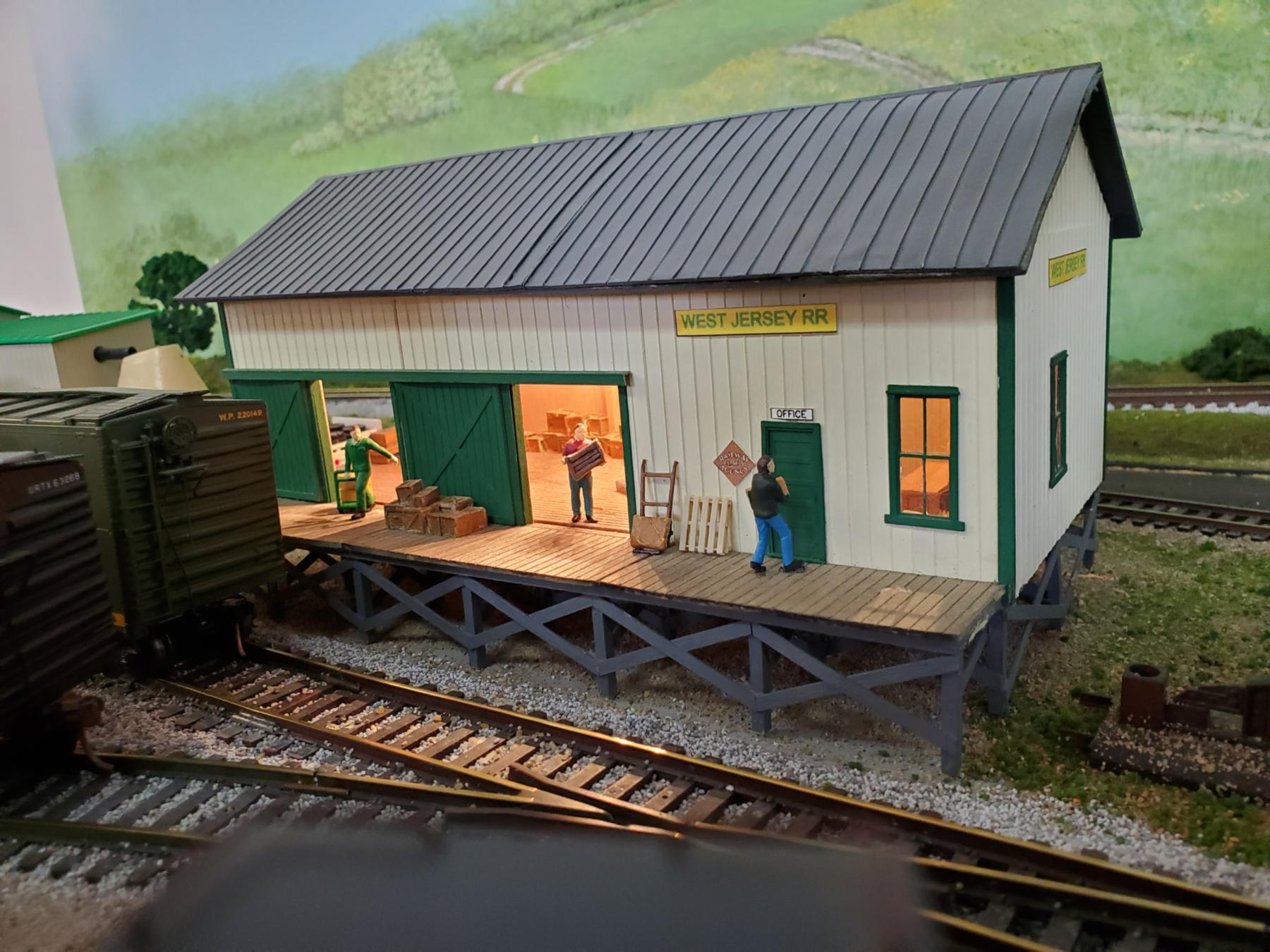 The freight house (#4 on the track plan) has been completed with figures and interior LED lighting.