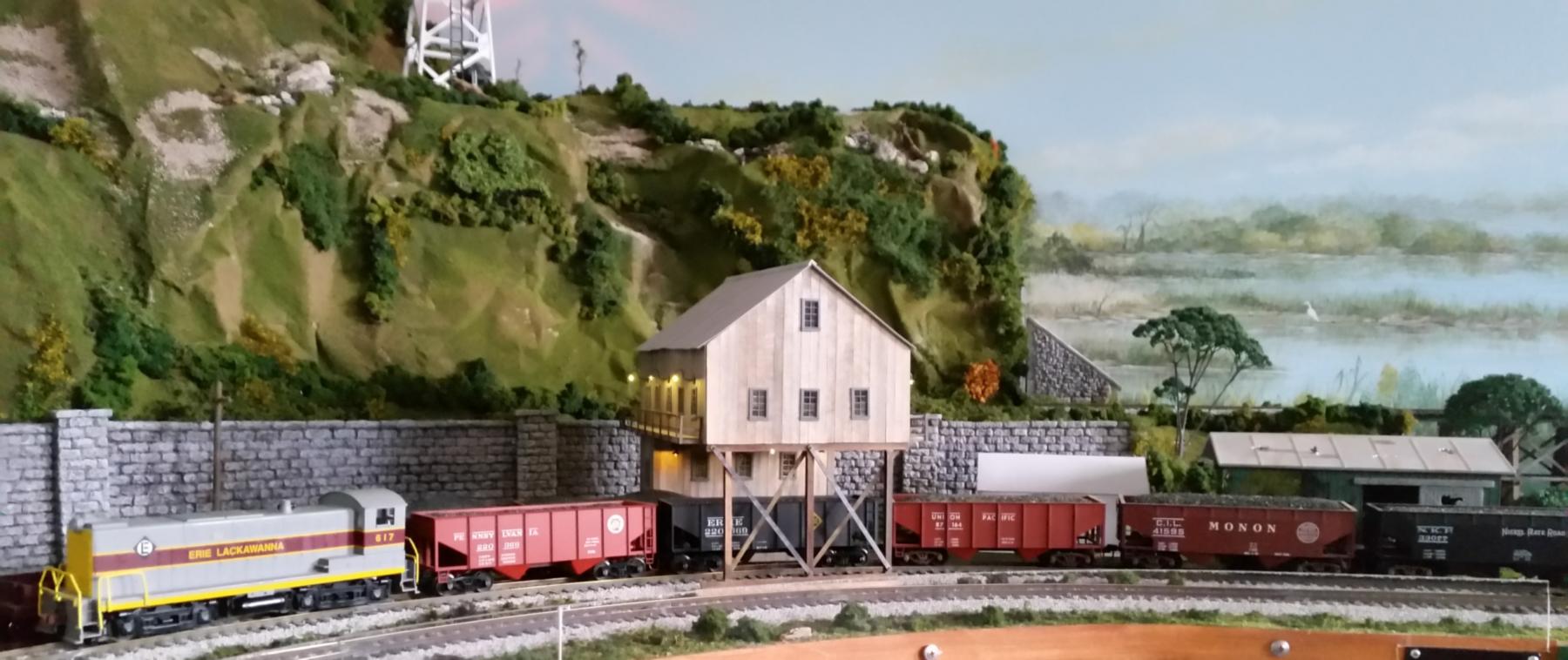 The tipple at the coal mine (#23 in the track plan) is completely scratchbuilt, and it has 11 LEDs installed for the exterior lighting.