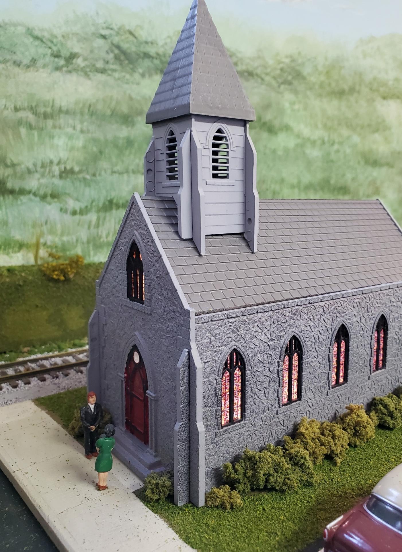 This is a modified Bachmann Plasticville church (#45 on the track plan).