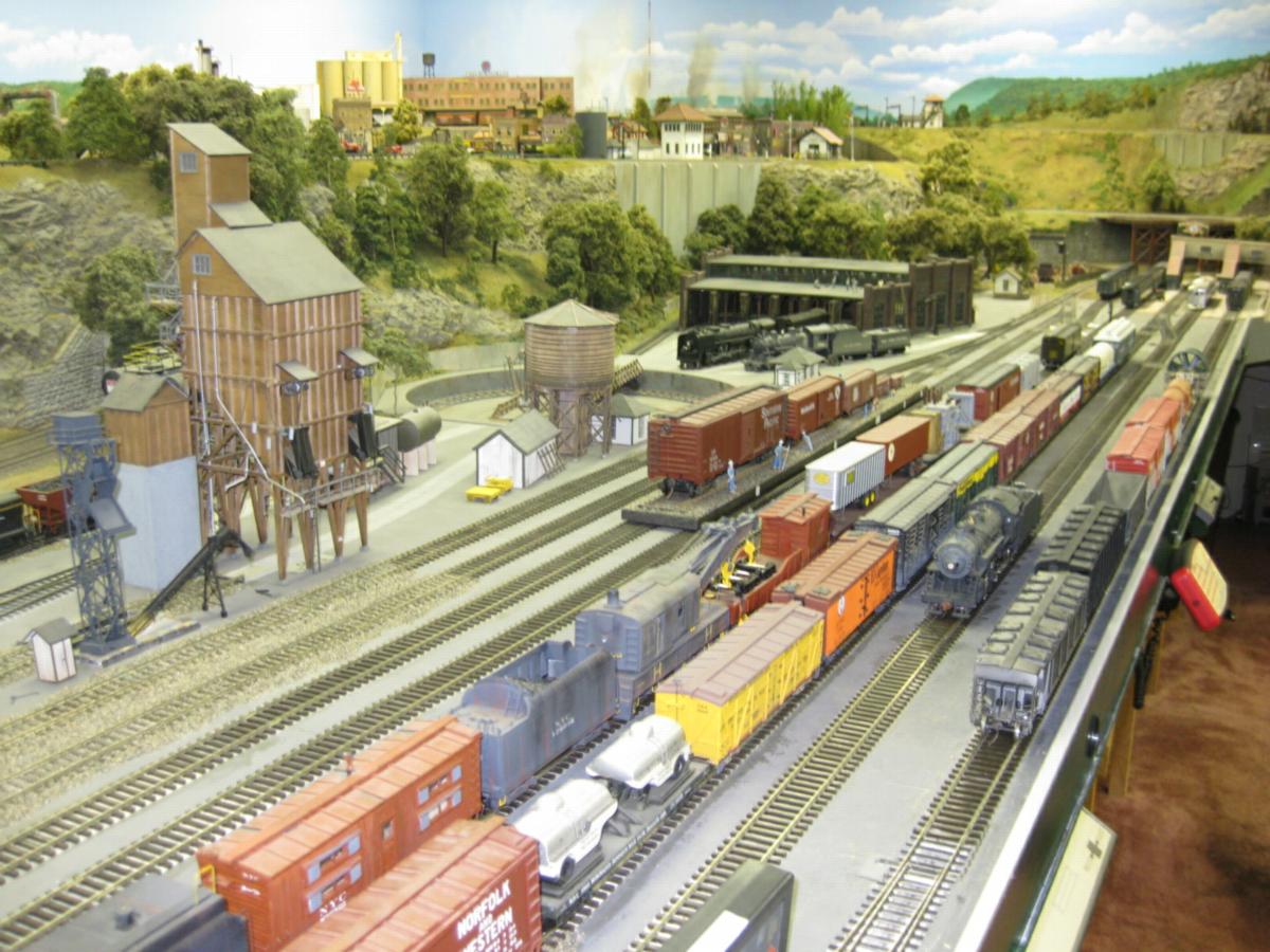 Built into a converted three-car garage. Nearly 20 people contributed to the completion of this layout. Ed published the 3/16 'S'cale Railroading magazine, was the president of the NASG for number of years, was a member of the NMRA's DCC Working Group, and co-authored a book on DCC.