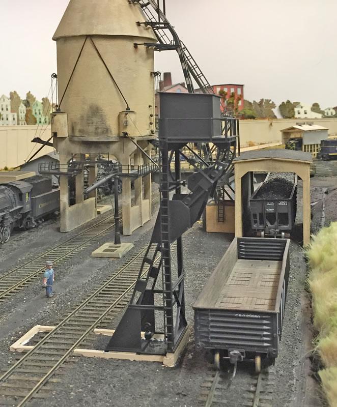 William E. Simonton of Virginia happens to be a skilled architectural and mechanical draftsman who has become the go-to source for many items of interest to Chesapeake and Ohio fans, especially the structures at Hinton. Mr. Simonton makes these available on his Shapeways site as 3D printed structures under the shop name ClimaxShop. These are produced primarily in HO, but Mr. Simonton allowed me to prevail on him to produce both the single and double track versions of the F-M cinder conveyers in S. (He also produces a standard C&O tool house in S and the gables standard to the C&O's iconic Quinnemont cabin and Marlinton type station in S.)
